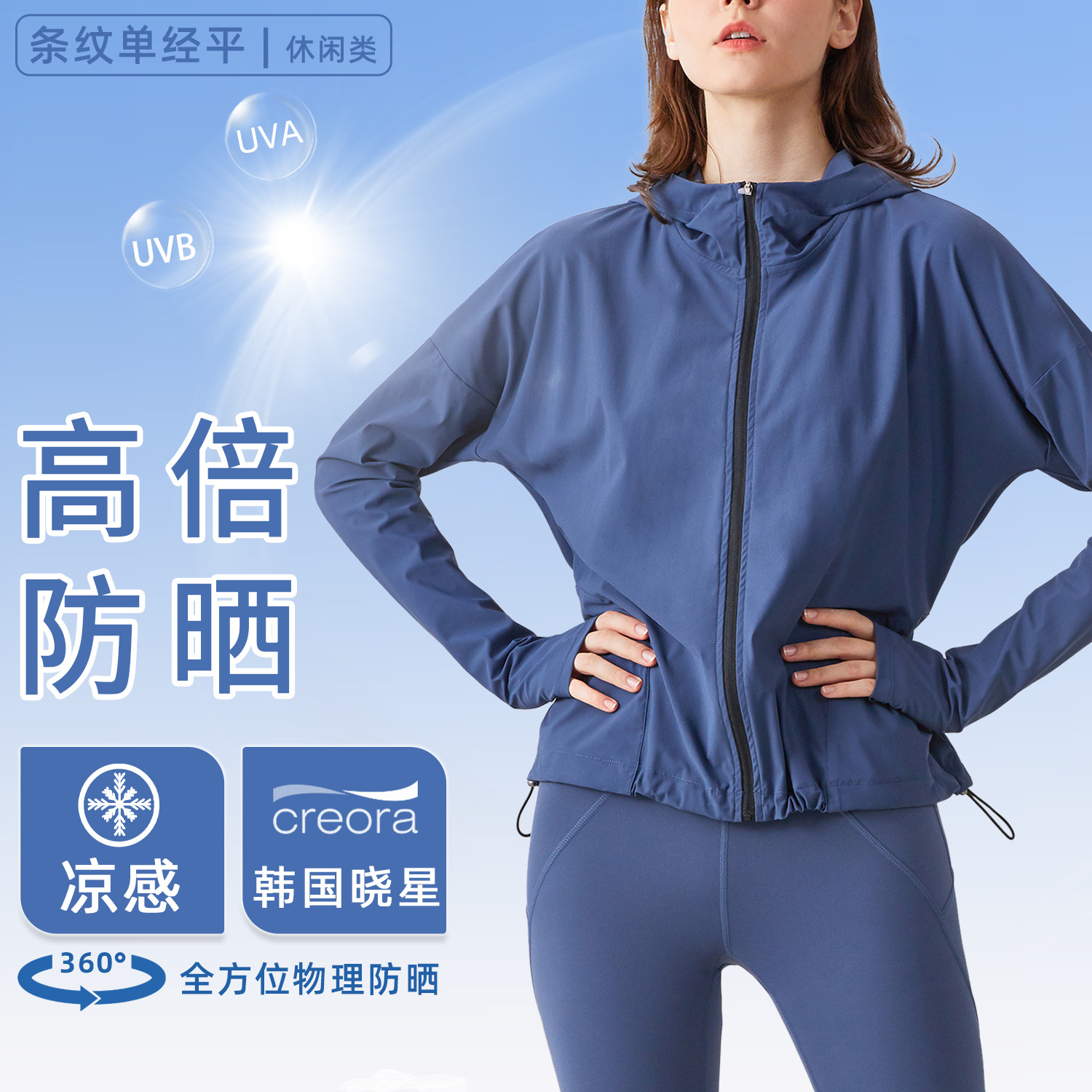 SC夏季凉感防晒衣拉链宽松连帽健身服女跨境轻薄透气跑步防晒外套