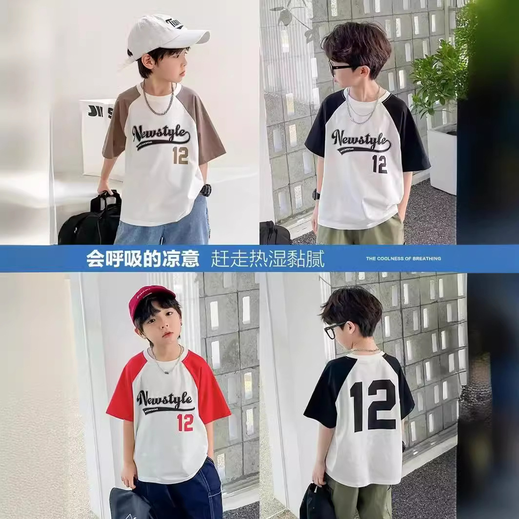男童夏装短袖T恤儿童冰瓷棉运动体恤夏新款透气凉感童装外贸