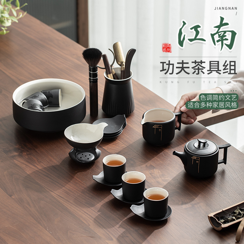 日式简约江南茶具套组办公家用泡茶壶茶杯整套黑陶功夫茶具礼盒装