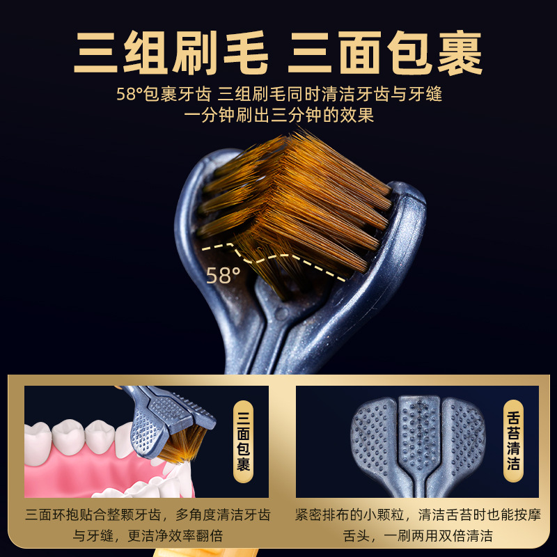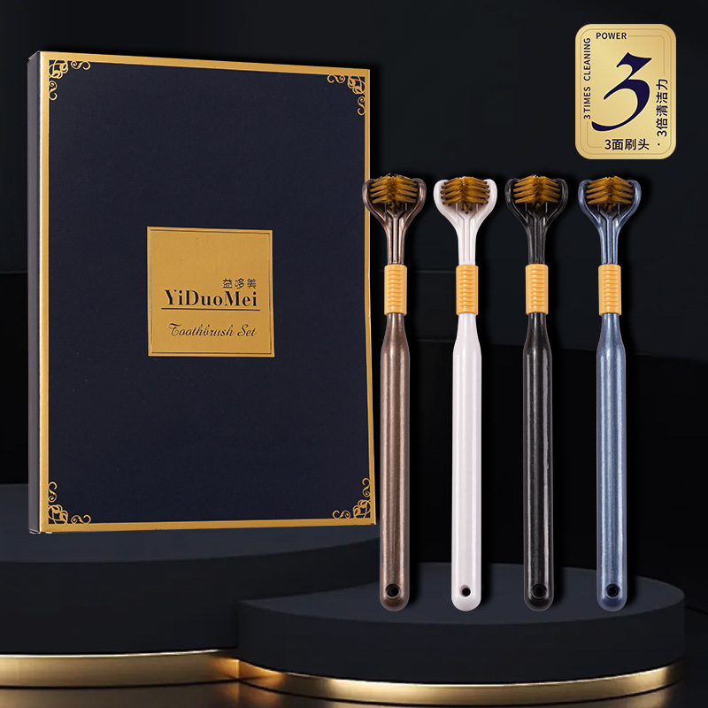 益哆美三面牙刷三头包裹式牙刷高效清洁成人家用轻奢礼盒