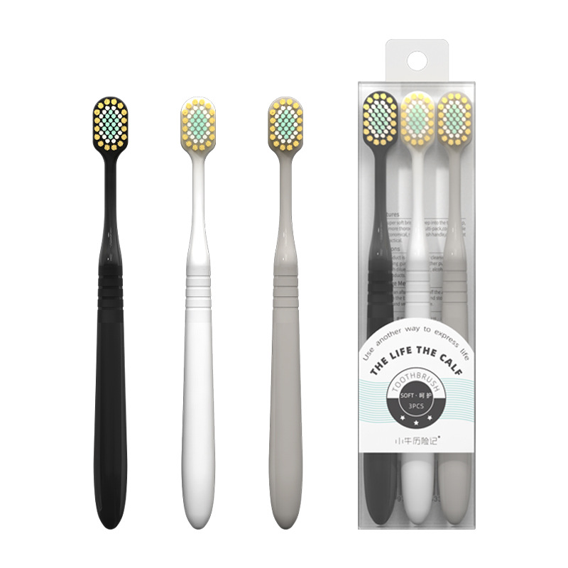扬州小牛历险记厂家3支装悬浮刷毛成人软毛牙刷批发 超薄宽头