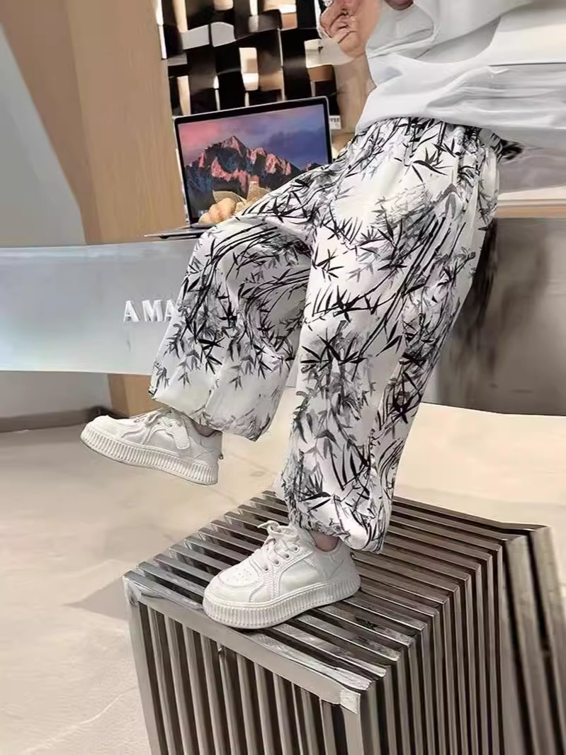 国潮儿童新款中国风百搭薄款休闲裤男女童夏季新中式冰丝防蚊长裤