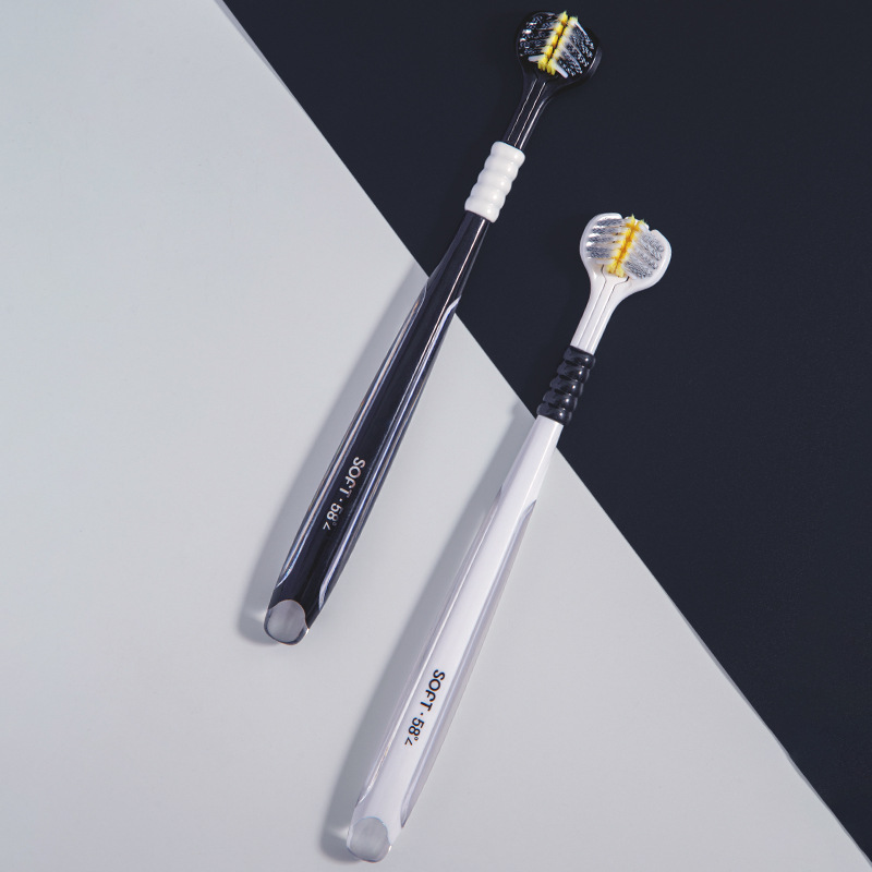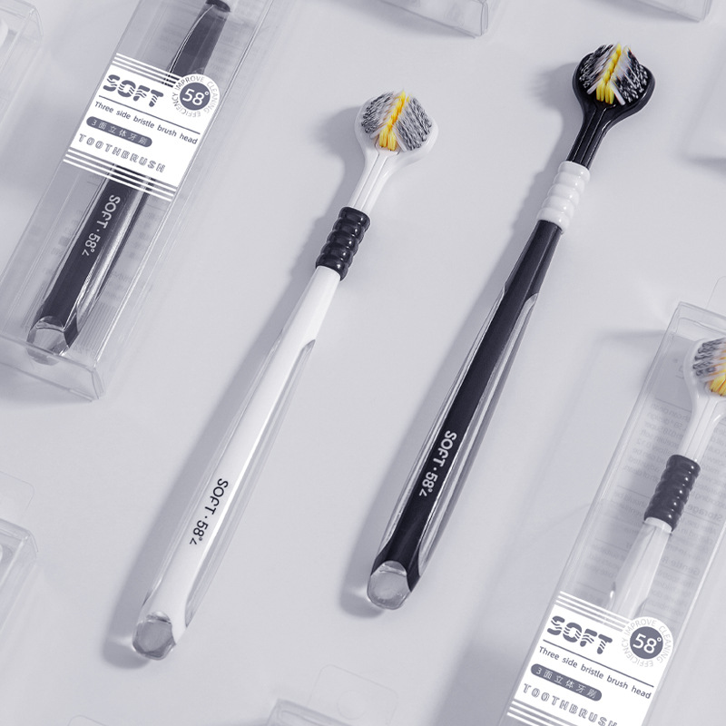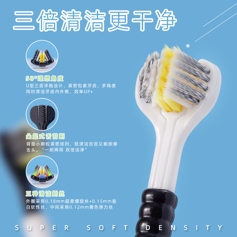 小牛历险记独立透明包装三色毛螺旋丝三面牙刷家用大人软毛牙刷