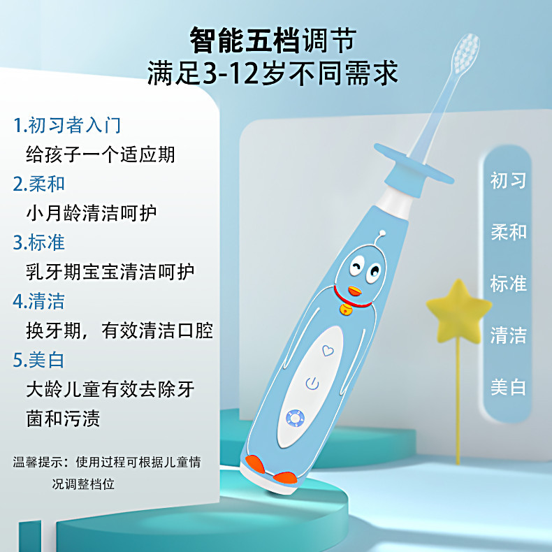 跨境 充电式硅胶软毛防水声波自动儿童电动牙刷