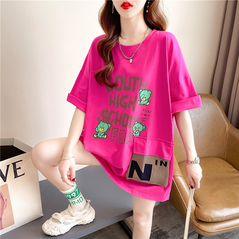 中长款短袖t恤女新款口袋小众设计感夏装上衣欧货潮