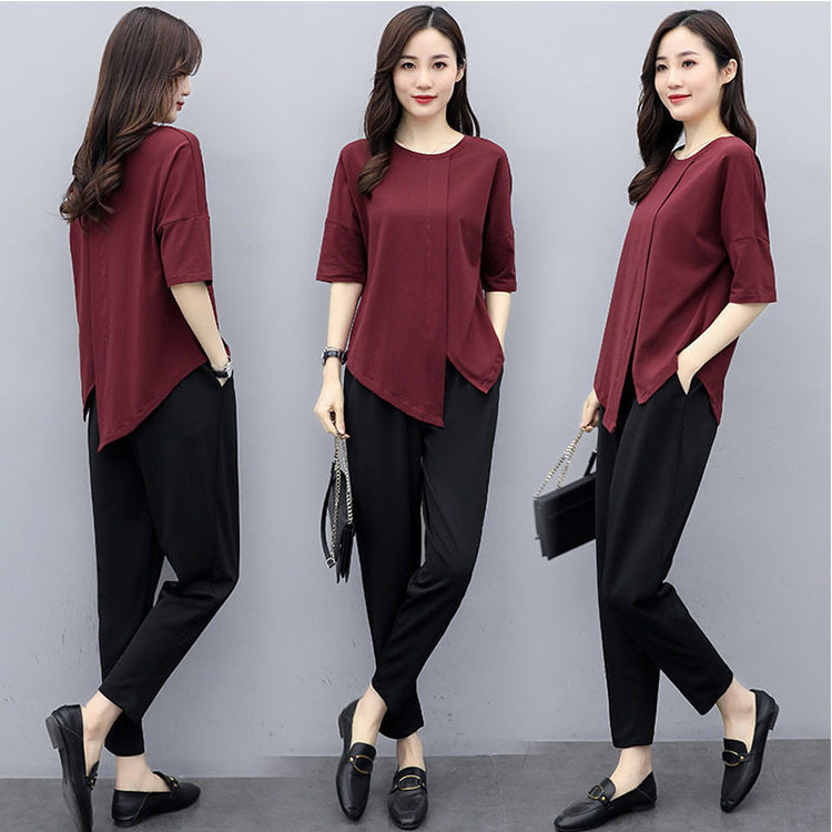 胖mm200斤时尚套装夏装新款 大码套装 亚马逊 女装气质显瘦