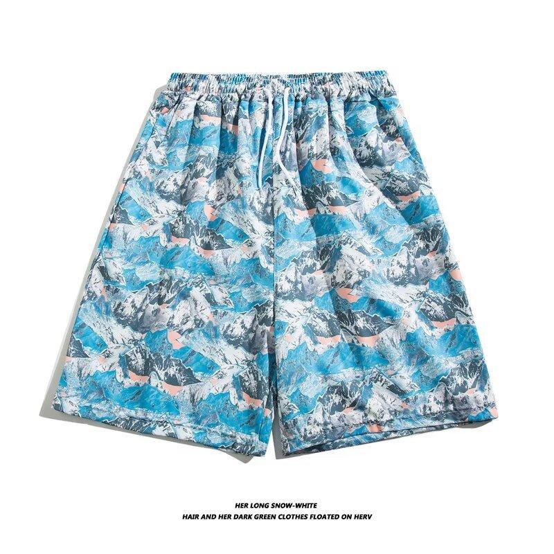 夏威夷风满印运动短裤男生潮牌风夏季街头宽松阔腿休闲百搭沙滩裤