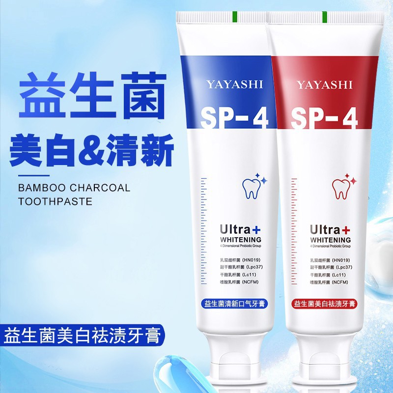抖音同款>SP-4益生菌亮白牙膏清新口气改善黄牙渍家庭装男女120g