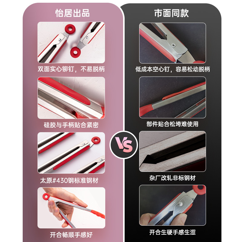 厨房工具夹子硅胶食物夹耐高温防烫烘焙不锈钢食品夹烧烤夹烤肉夹