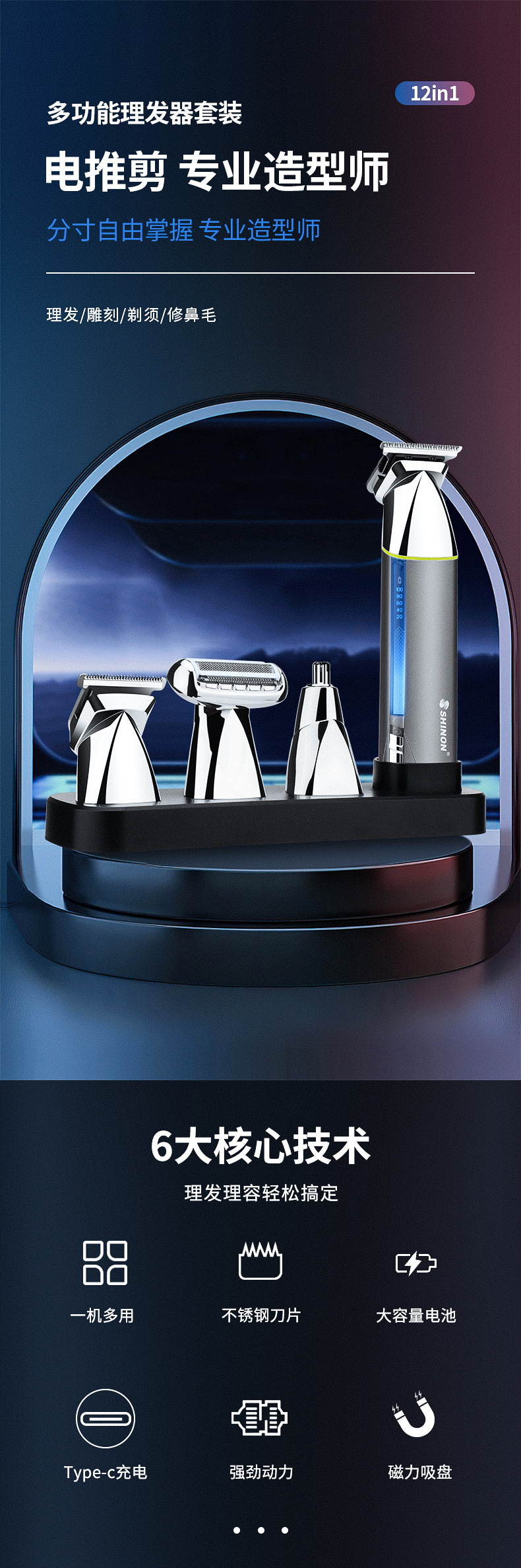 产品特点:油头雕刻 剃须 修鼻毛 剃体毛
