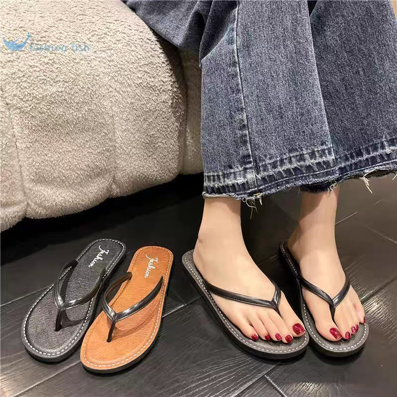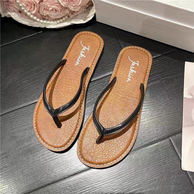 时尚人字拖鞋女外穿夏季韩版平底皮纹PVC防滑夹脚沙滩女式凉拖鞋