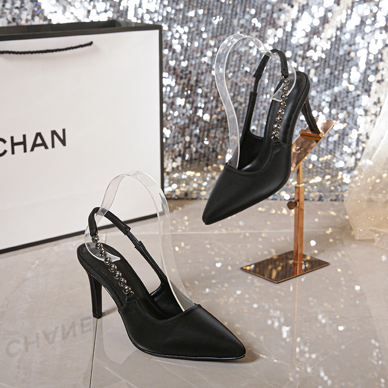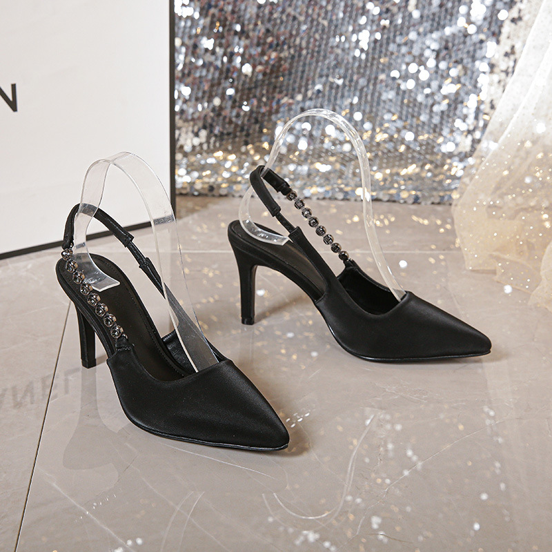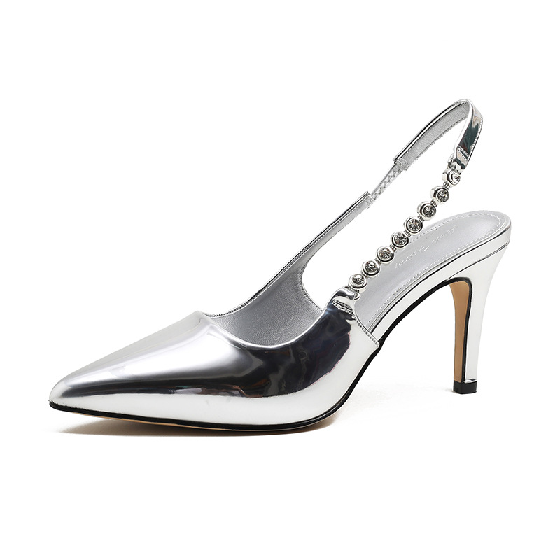夏季新款银色水钻尖头高跟鞋女细跟气质性感一字带凉鞋