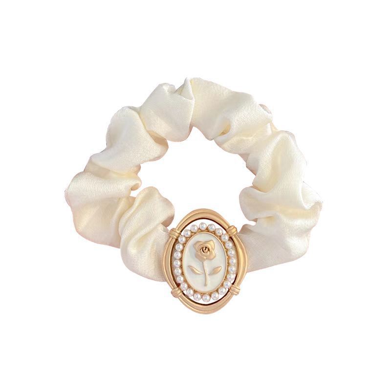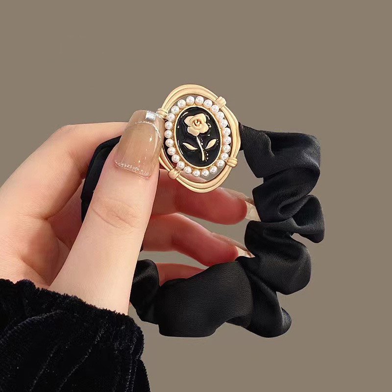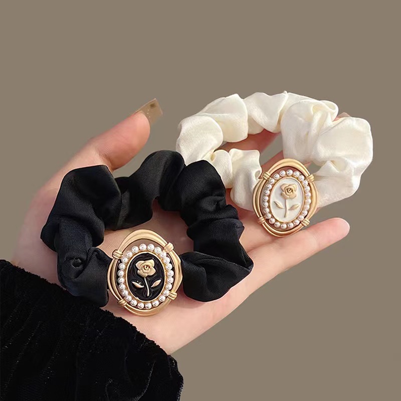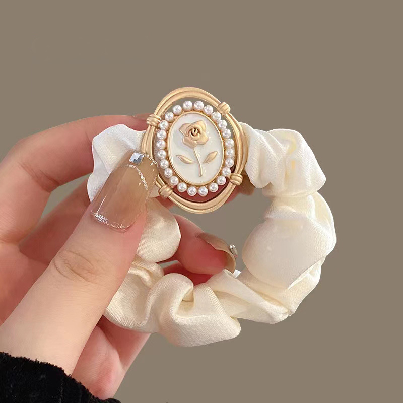 韩版小香风绸缎大肠发圈玫瑰珍珠款重工发圈复古简约百搭皮筋头绳