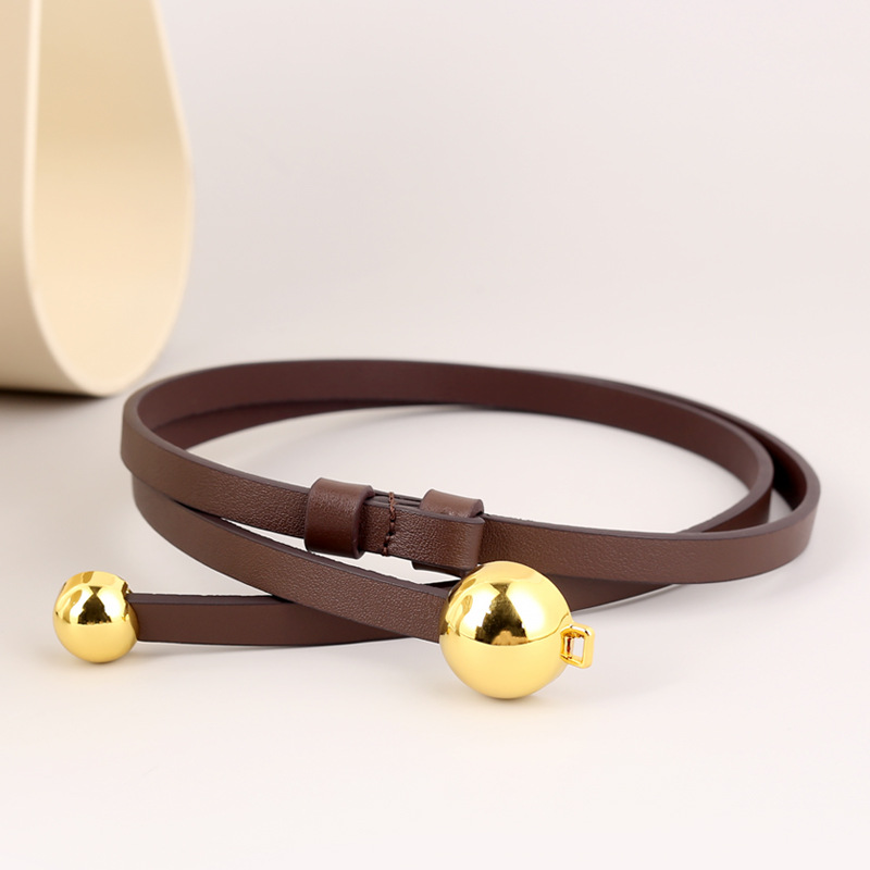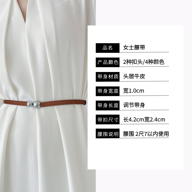 新款真皮细腰带女士小葫芦对扣休闲百搭装饰配连衣裙