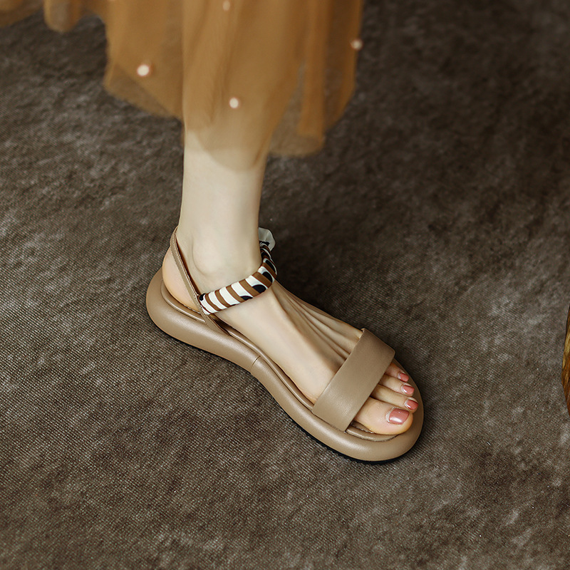 凉鞋女夏季外穿仙女今年新款一字带沙滩厚底踩屎感平底罗马鞋