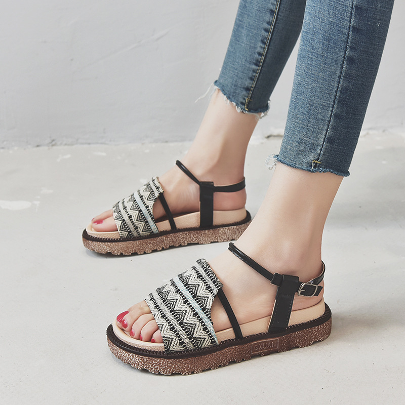 罗马凉鞋女夏季新款学生厚底欧洲站松糕跟鱼嘴外贸wish女鞋潮