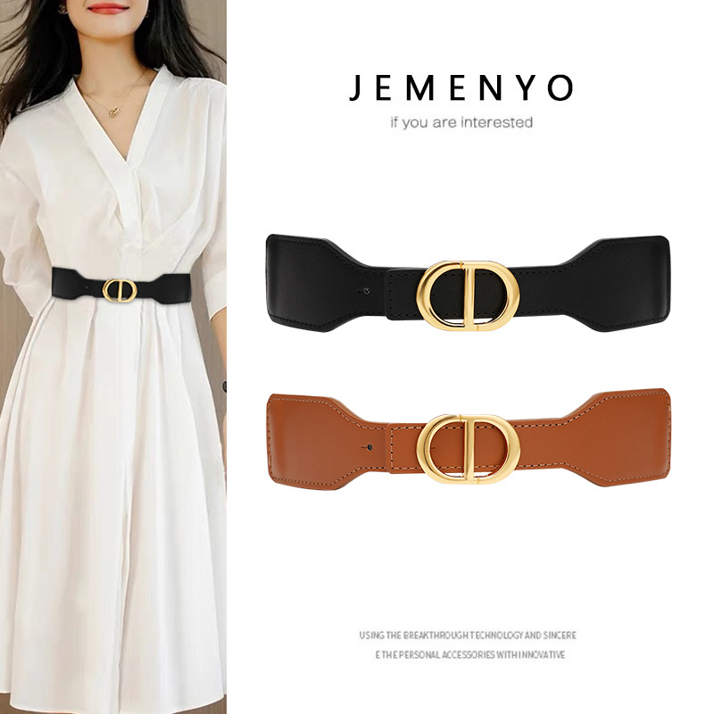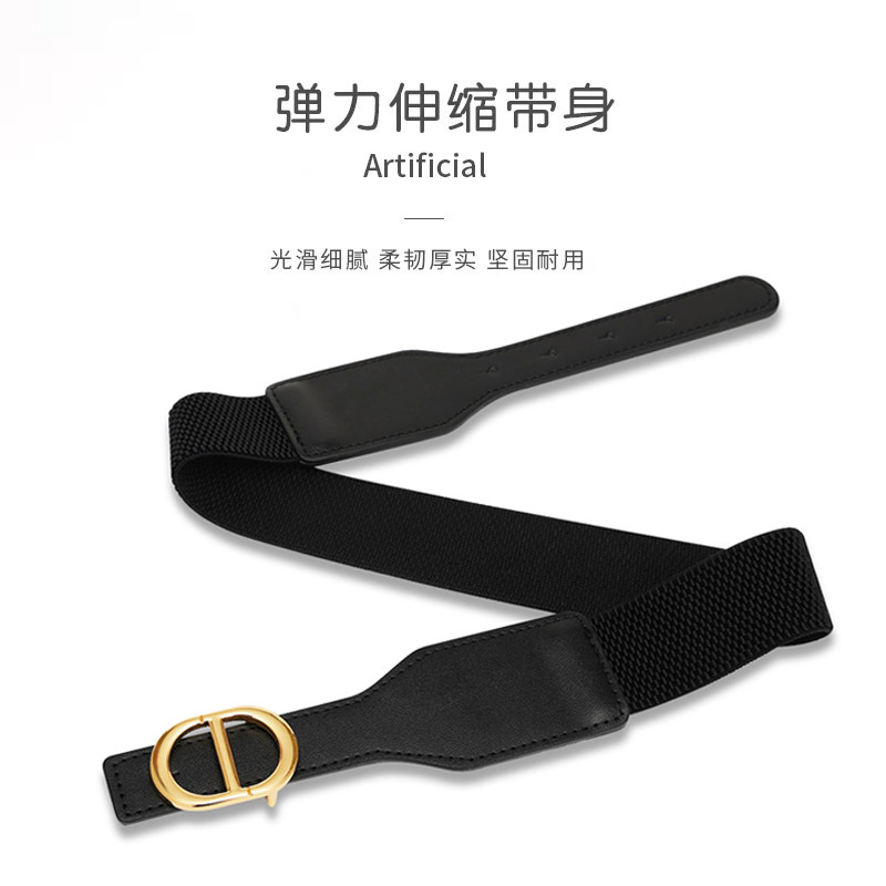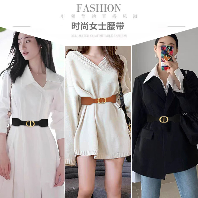 新款百搭时尚女士腰封装饰西装大衣松紧弹力腰带黑色简约皮带
