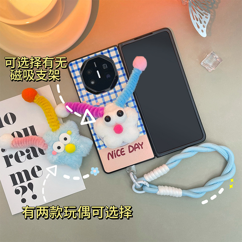 华为MateX6手机壳X5蓝色XT手提斜挎X3毛绒花朵玩偶磁吸支架潮