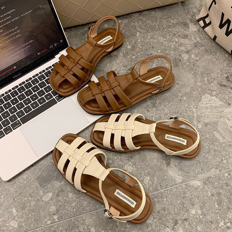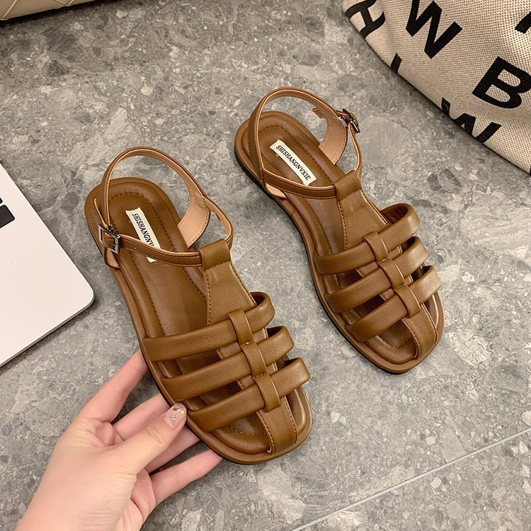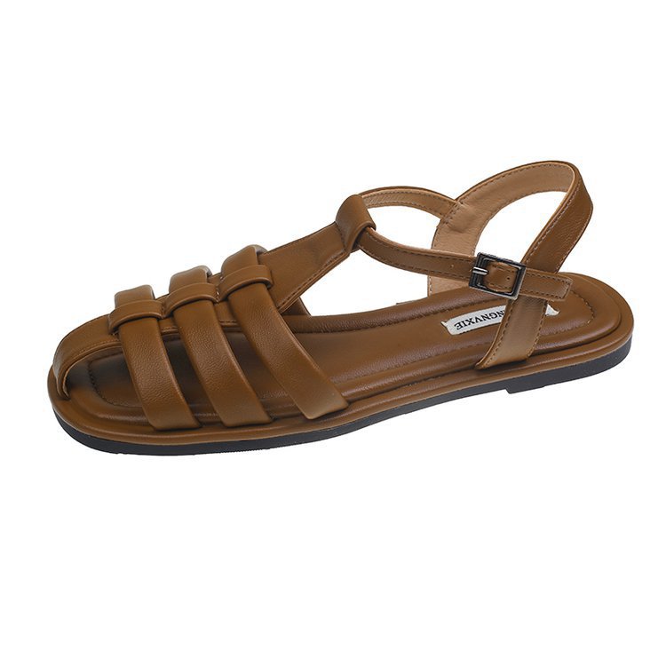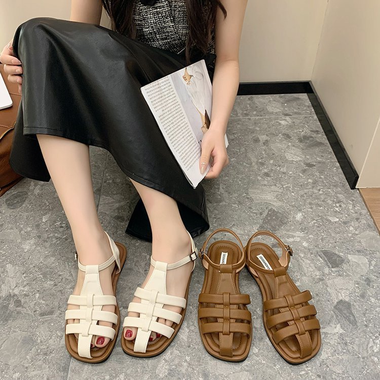 罗马凉鞋女新款夏季镂空编织平底包头猪笼鞋软底沙滩凉鞋