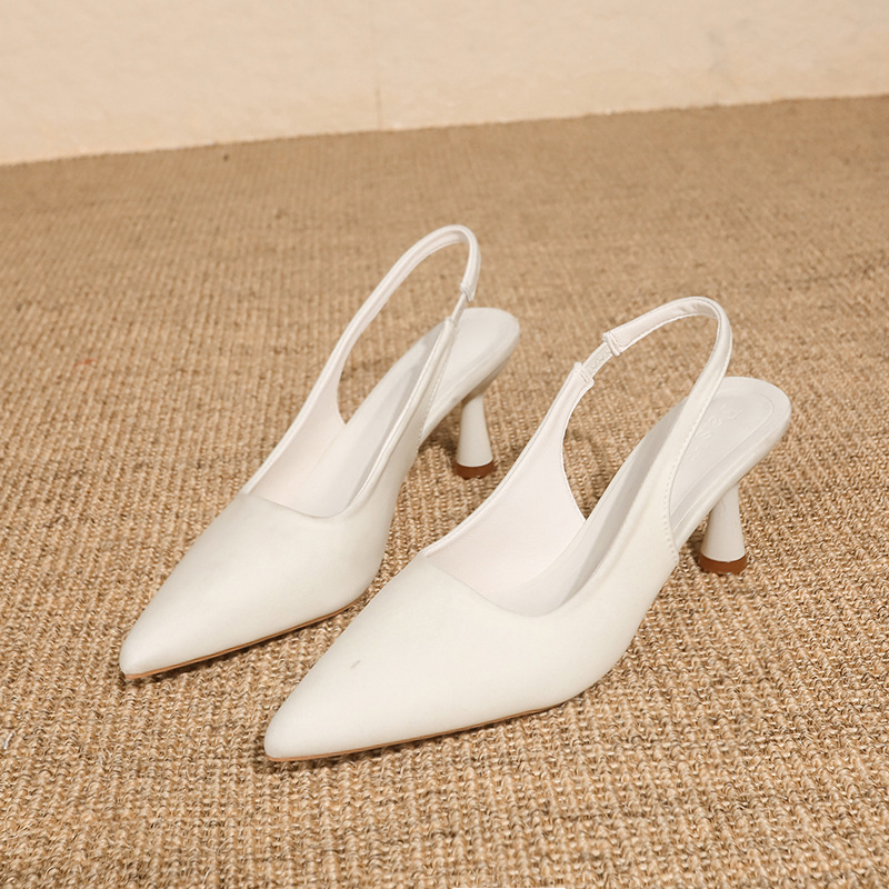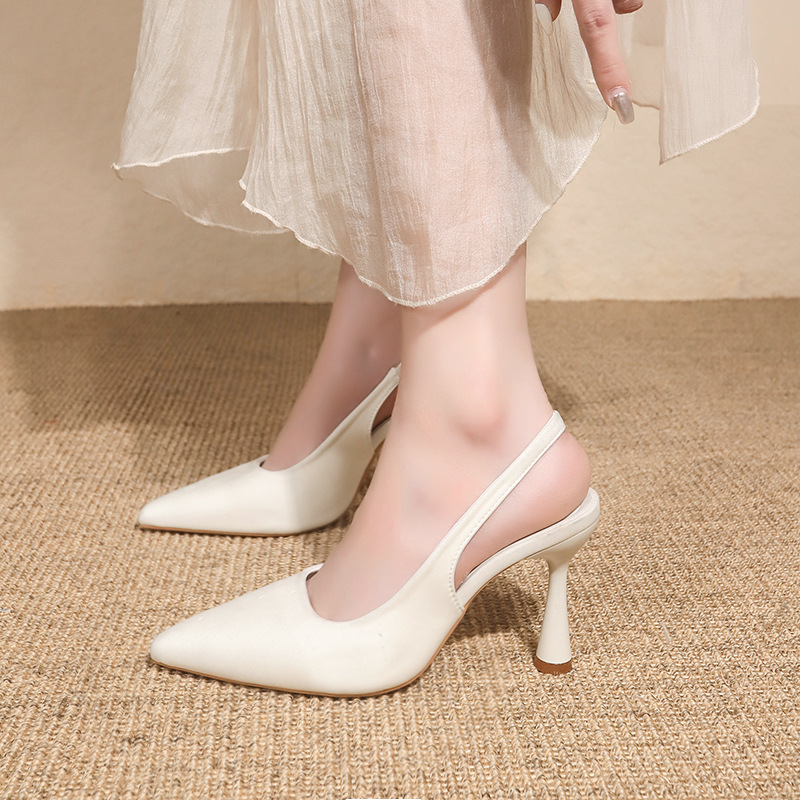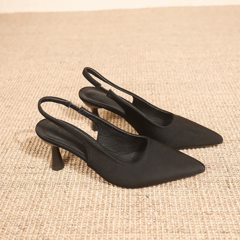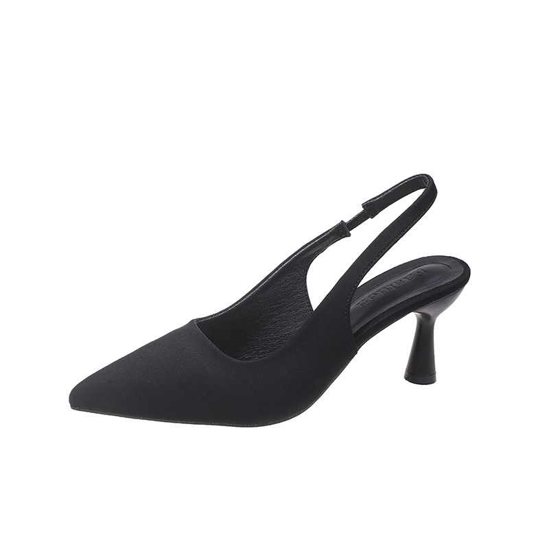 法式凉鞋女春夏新款浅口细跟凉鞋时尚尖头后空包头凉鞋