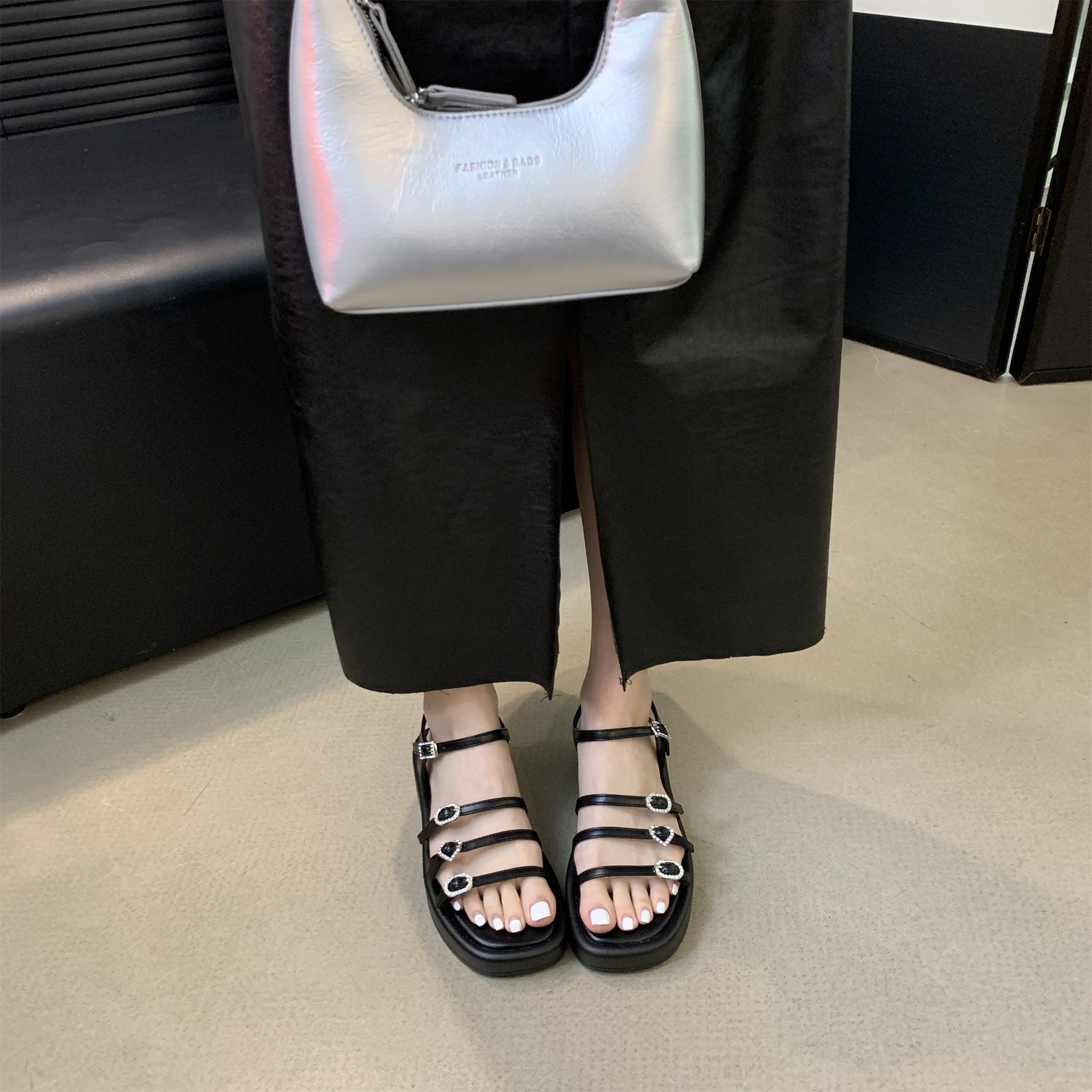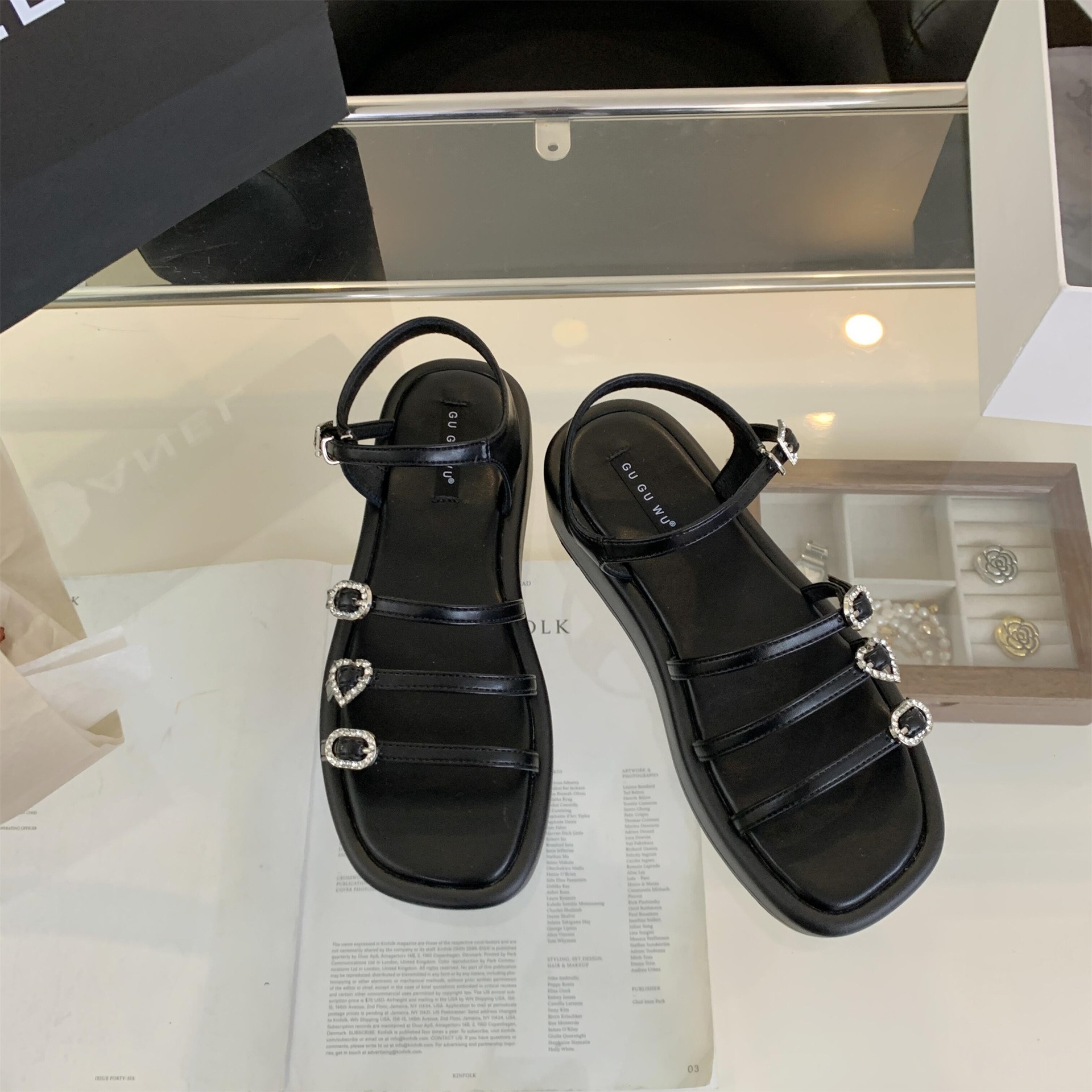 年新款夏季小众设计感露趾凉鞋女气质高跟厚底方头罗马鞋