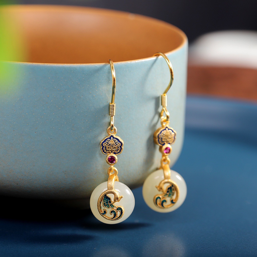 中式耳坠中国复古风和田耳环宋代复古耳钉旗袍流苏耳饰