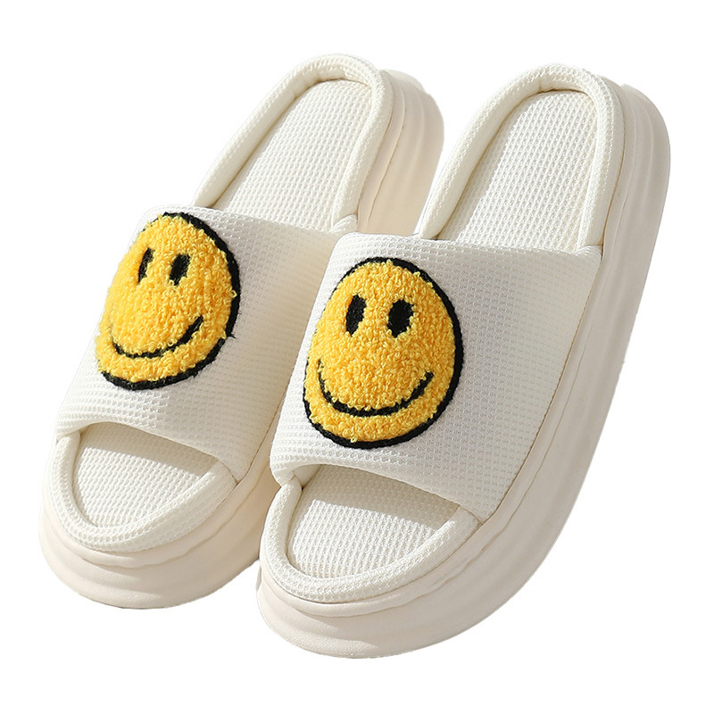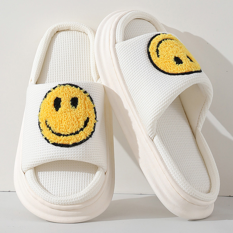 笑脸亚麻拖鞋女厚底家居时尚拖鞋室内居家