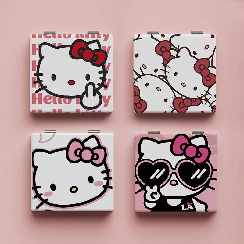 kt小猫小镜子凯蒂猫可爱化妆镜学生随身便携折叠镜双面图案补妆镜