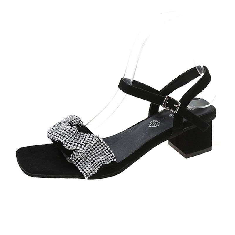 夏季新款时尚凉鞋女高跟粗跟时尚百搭一字扣方头中跟女凉鞋