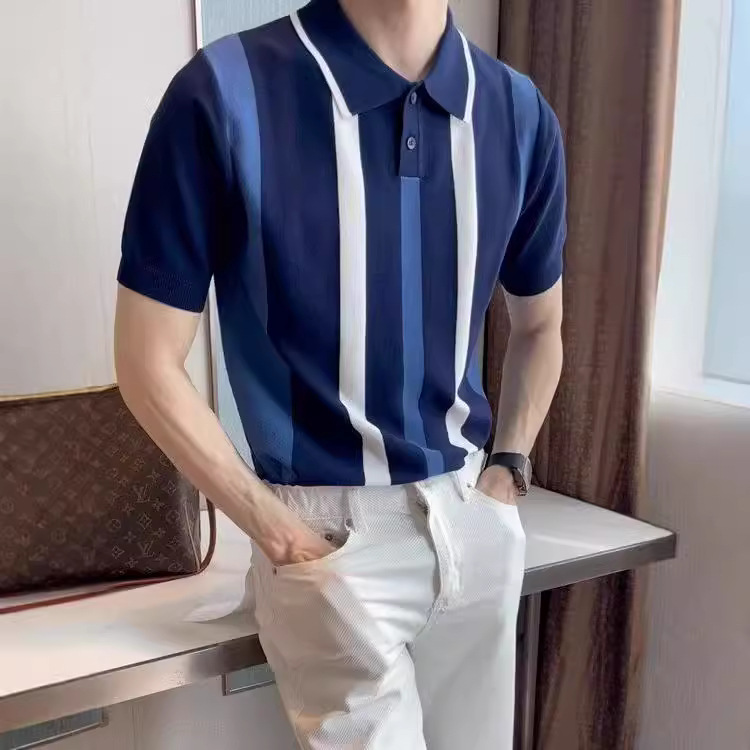 夏季新款POLO衫男士英伦复古高端撞色翻领T恤潮流冰丝透气短袖男