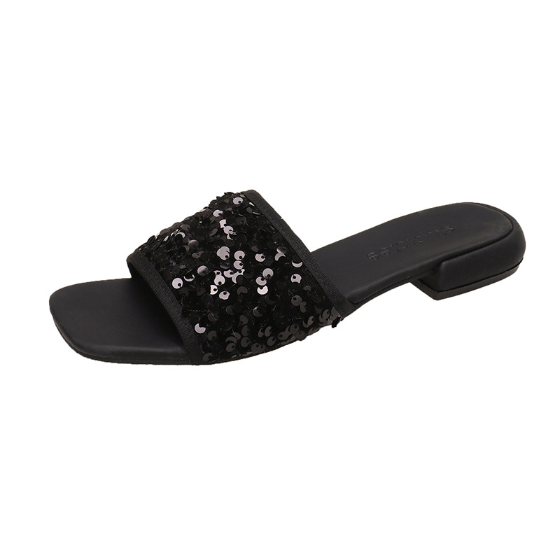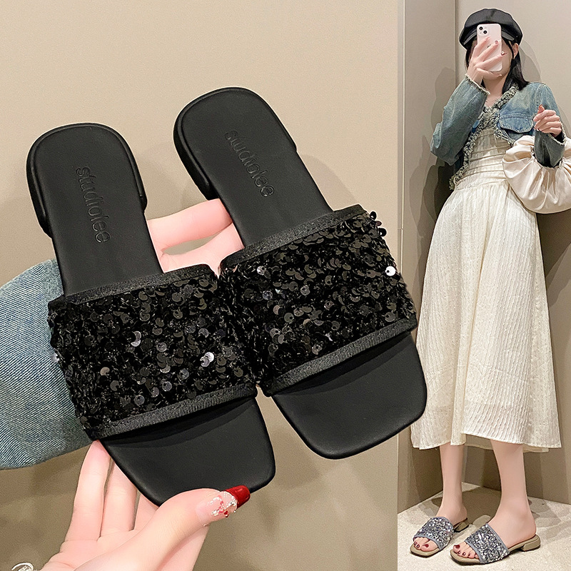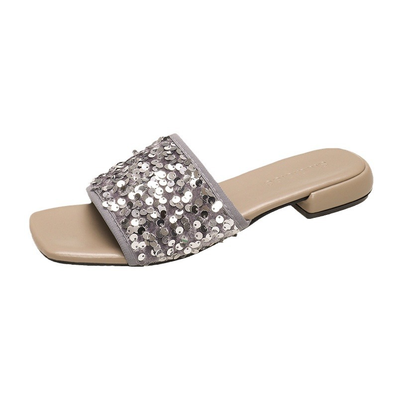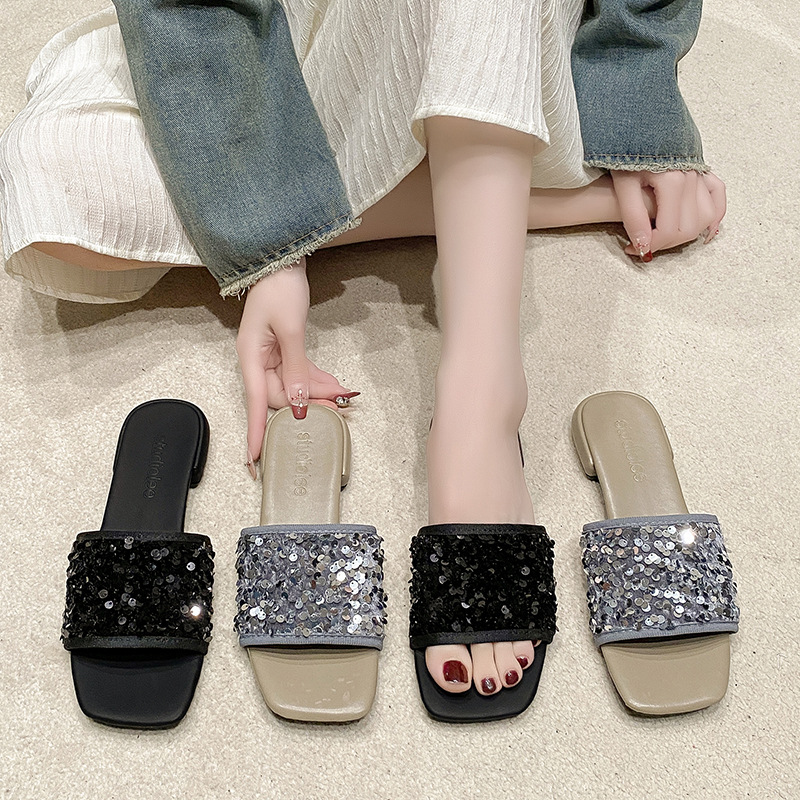 平底银色亮片一字拖鞋女鞋子外穿新款夏季时尚法式小凉拖凉鞋