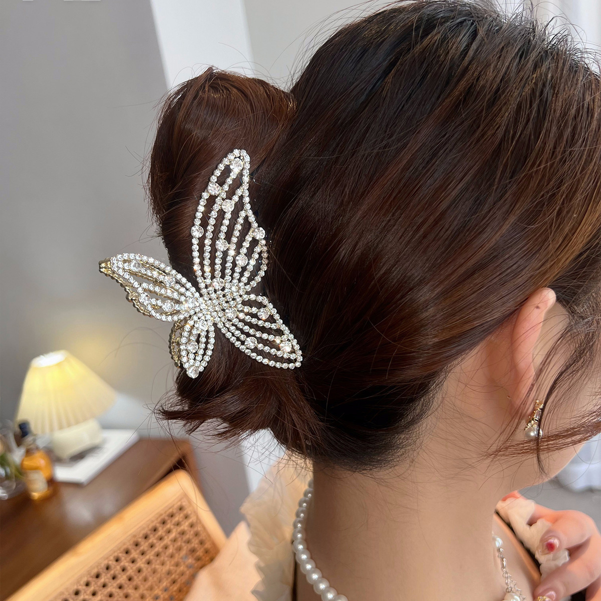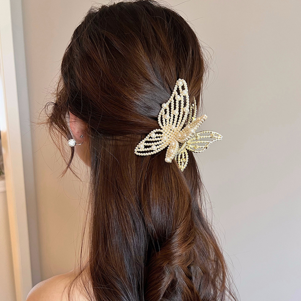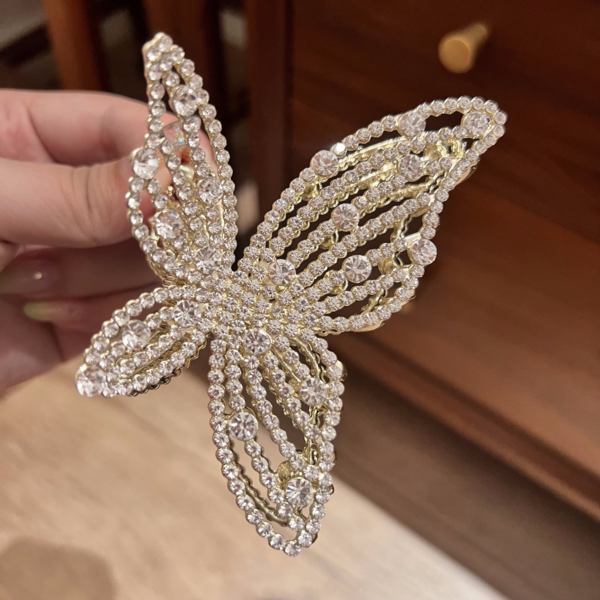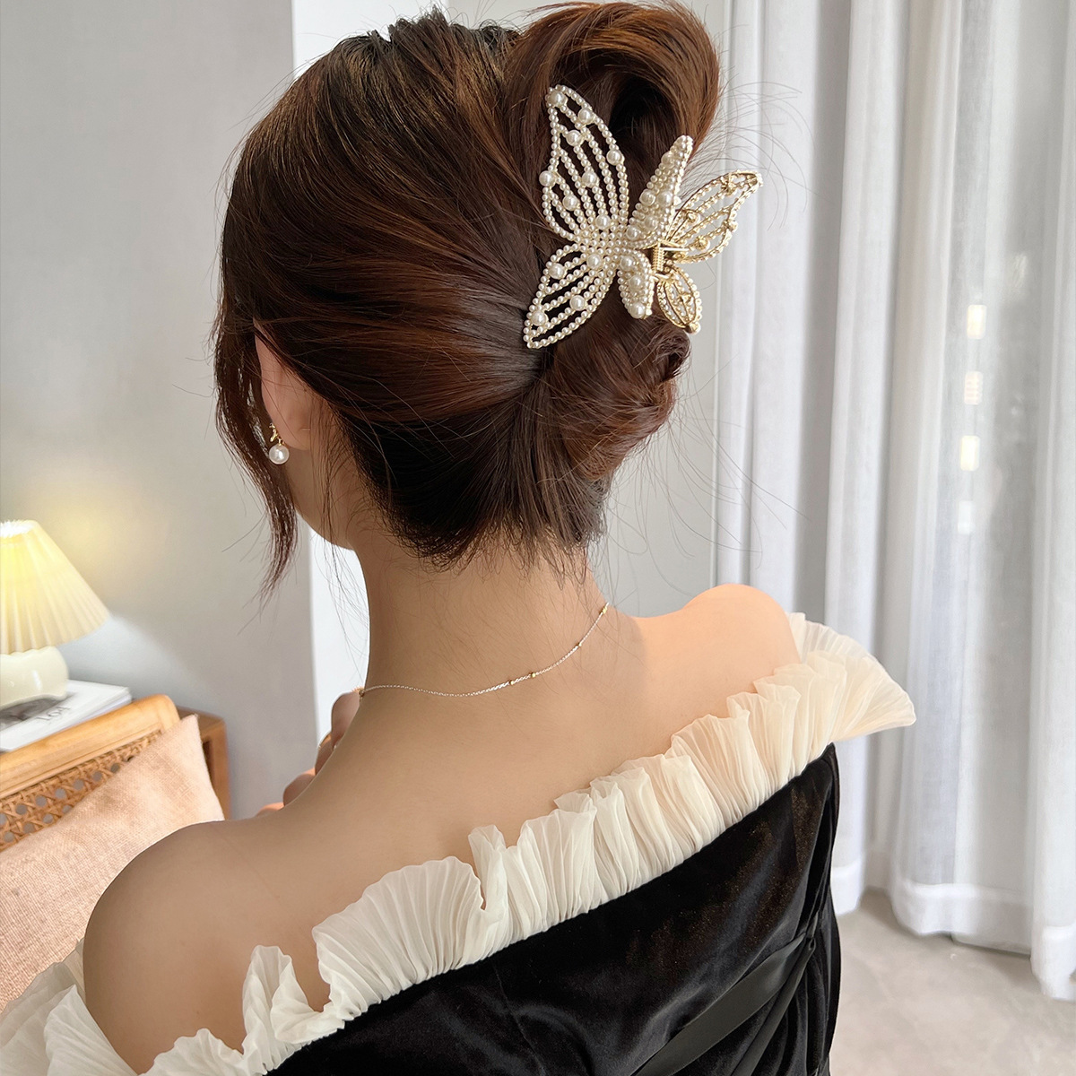 夏季网红超大号珍珠蝴蝶抓夹高颜值女后脑勺满钻精致夹子镂空发夹