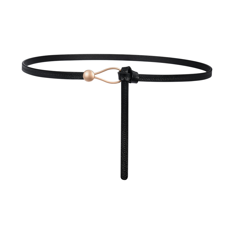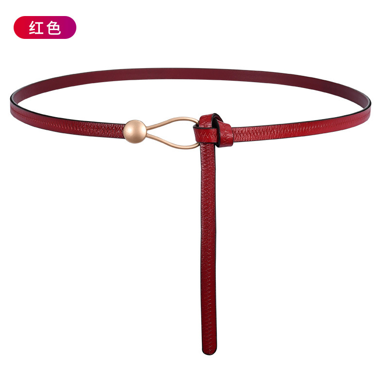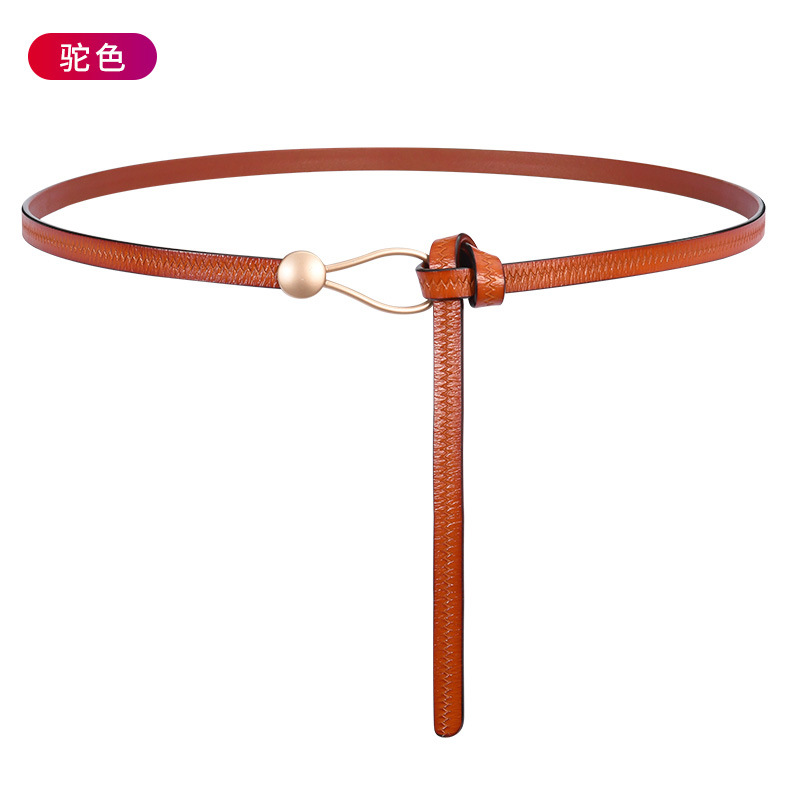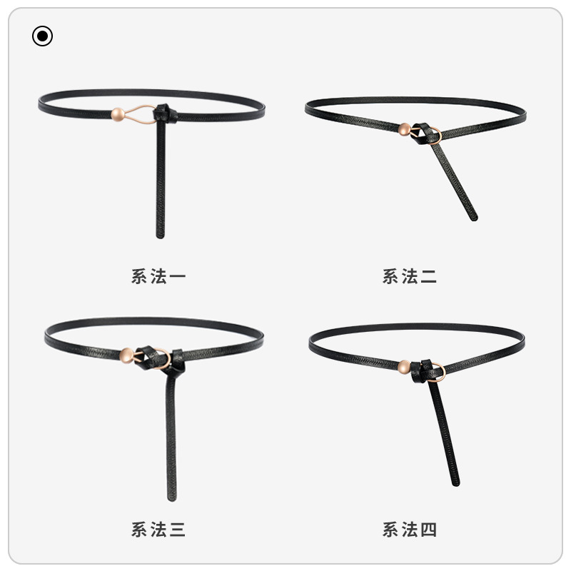 新款时尚女士打结小皮带百搭装饰毛大衣细腰带牛皮腰带宽1cm