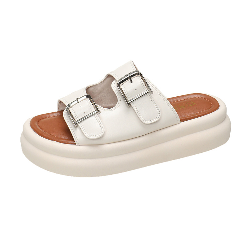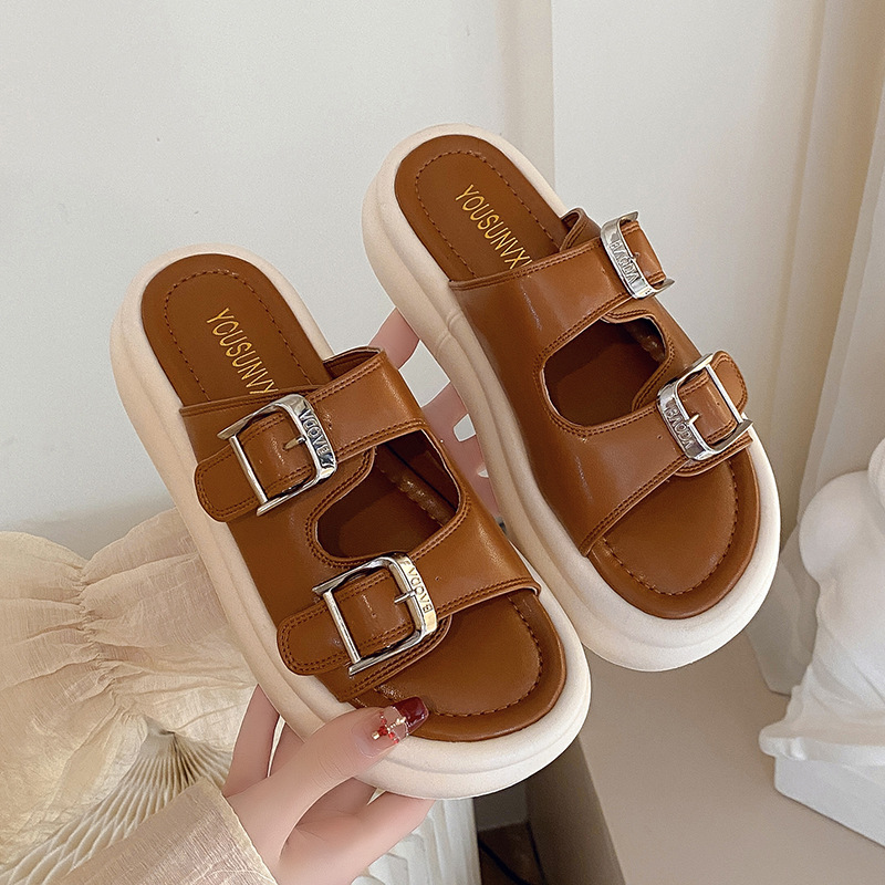 夏季新款松糕跟软底高级感优质搭扣拖鞋厚底增高外穿休闲女鞋