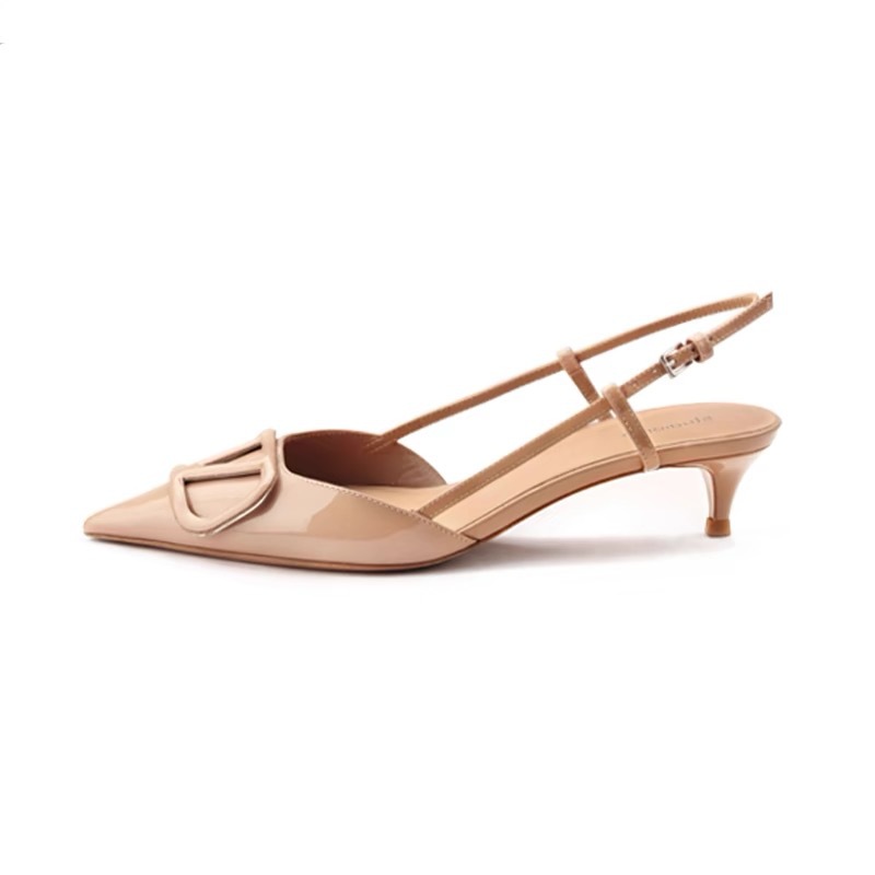 包头V扣裸色高跟鞋女细跟单鞋春夏新款性感一字带后空凉鞋