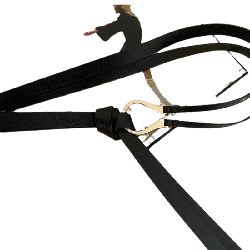 潮流马蹄扣皮带女免打孔细腰带简约百搭时尚打结小腰带