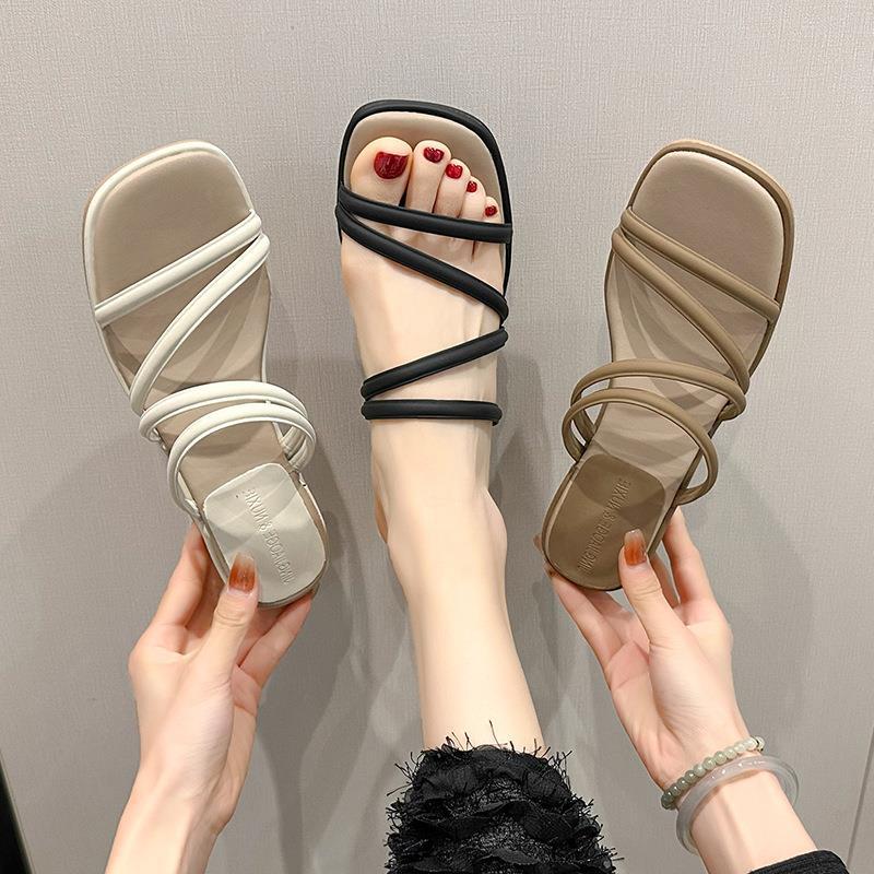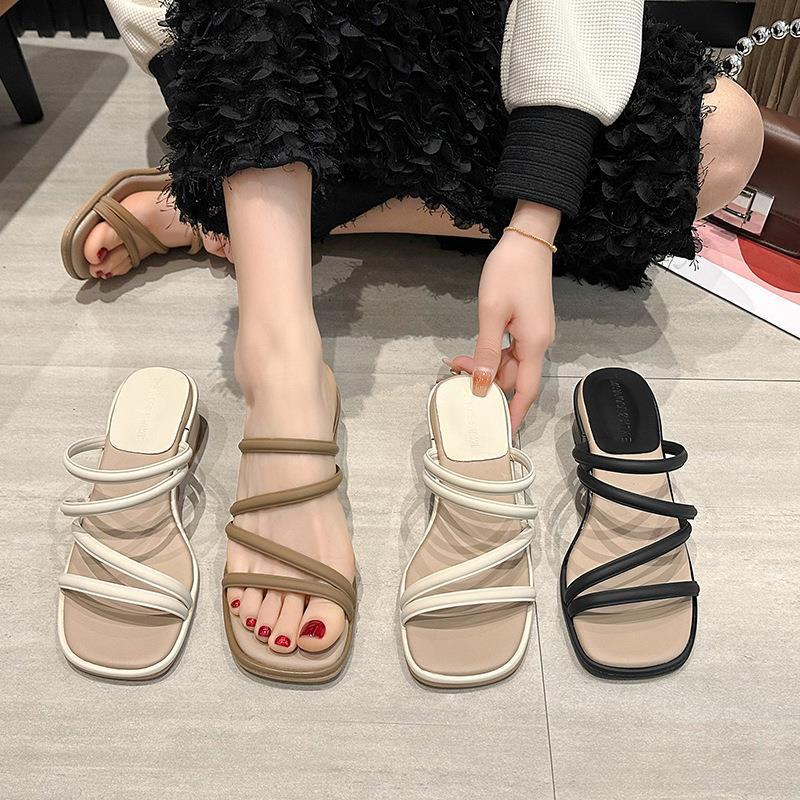 法式高级感凉拖鞋女夏季外穿新款细带粗跟一字两穿凉拖鞋