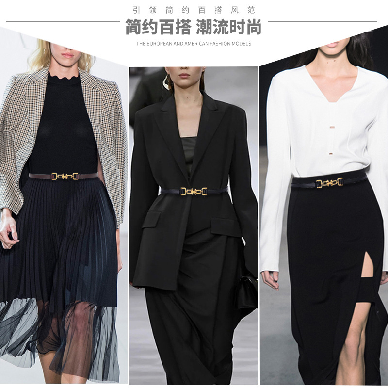 细腰带女真皮黑色装饰西装配大衣连衣裙时尚收腰百搭ins风皮带潮