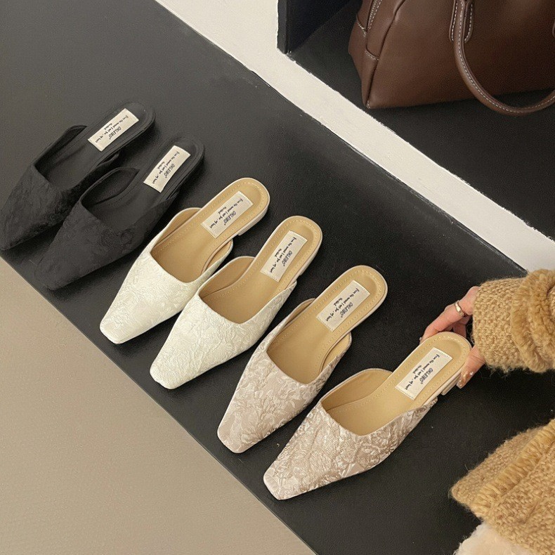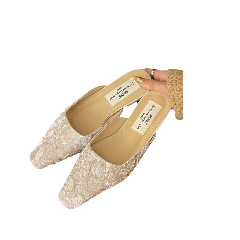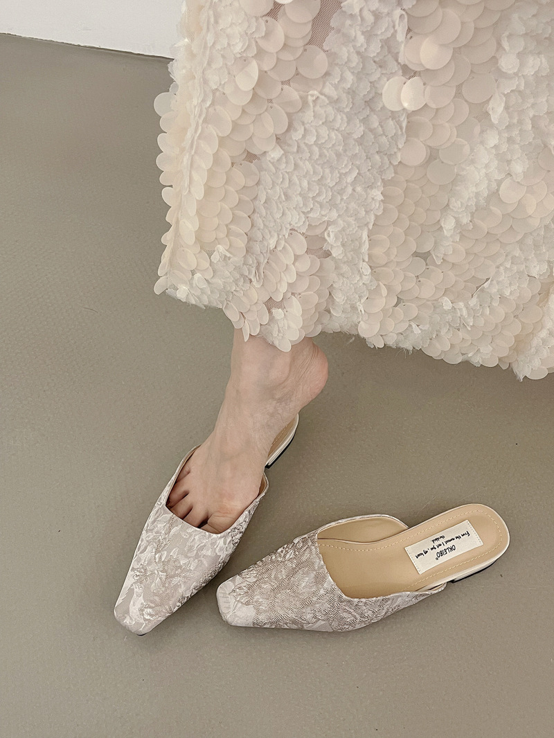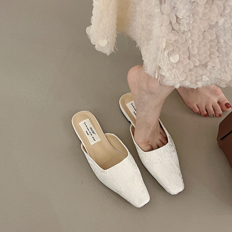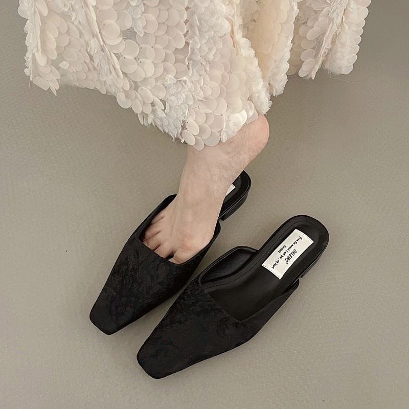 国风新中式凉拖鞋女新款绸缎印花面包头拖夏季外穿玛丽珍凉鞋