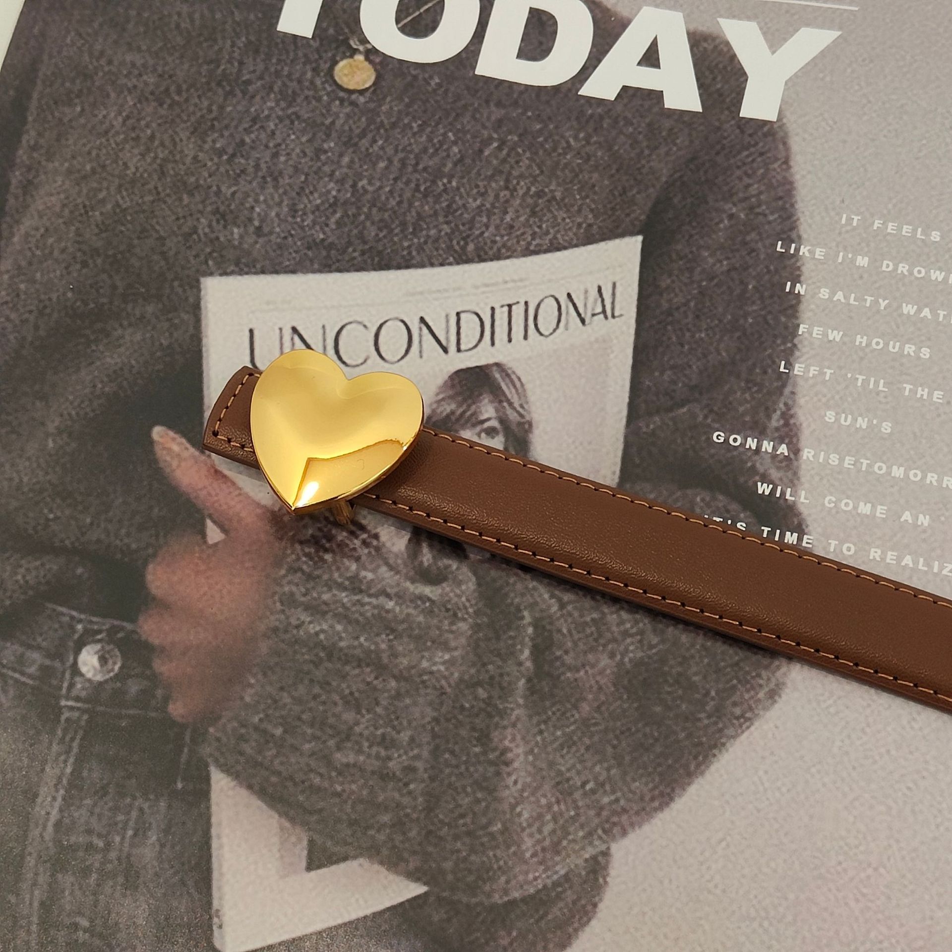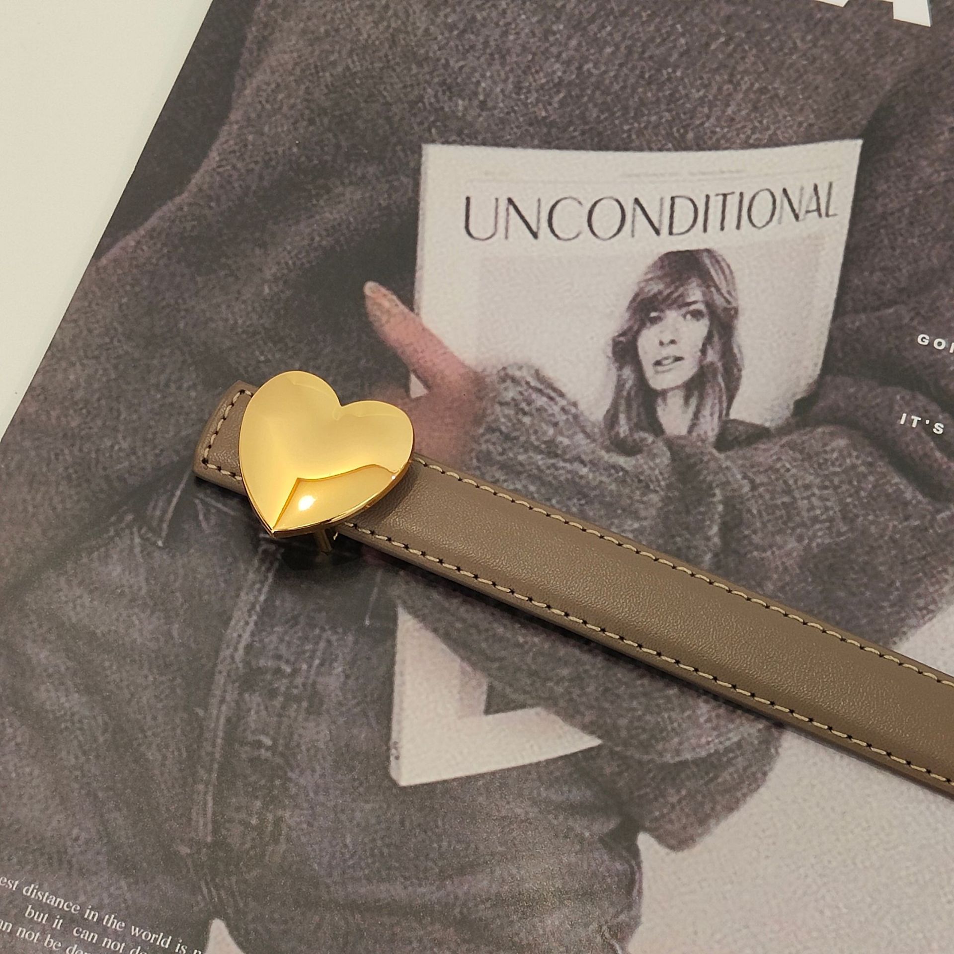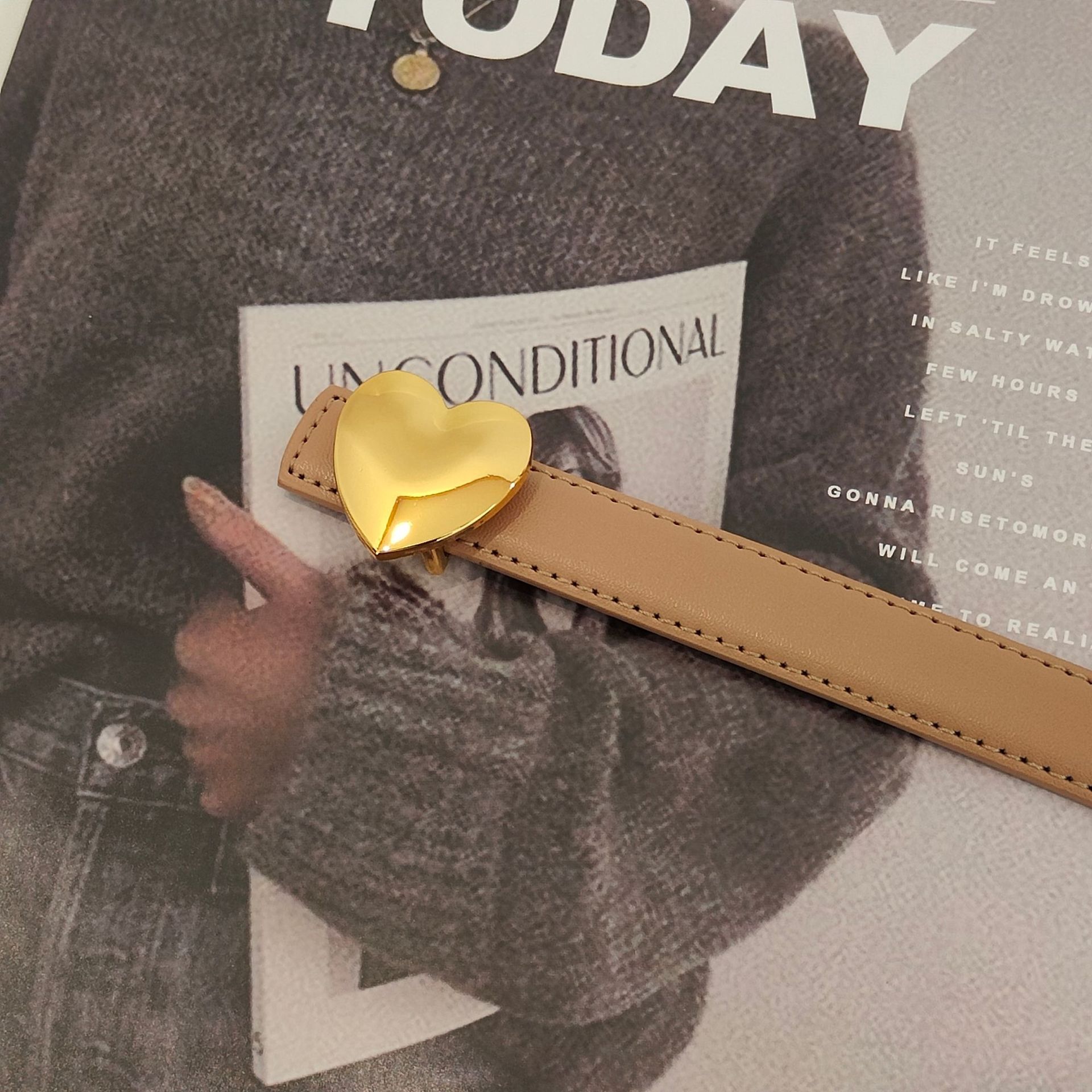 新款彩色爱心平滑扣牛皮皮带女百搭韩潮流心形腰带女
