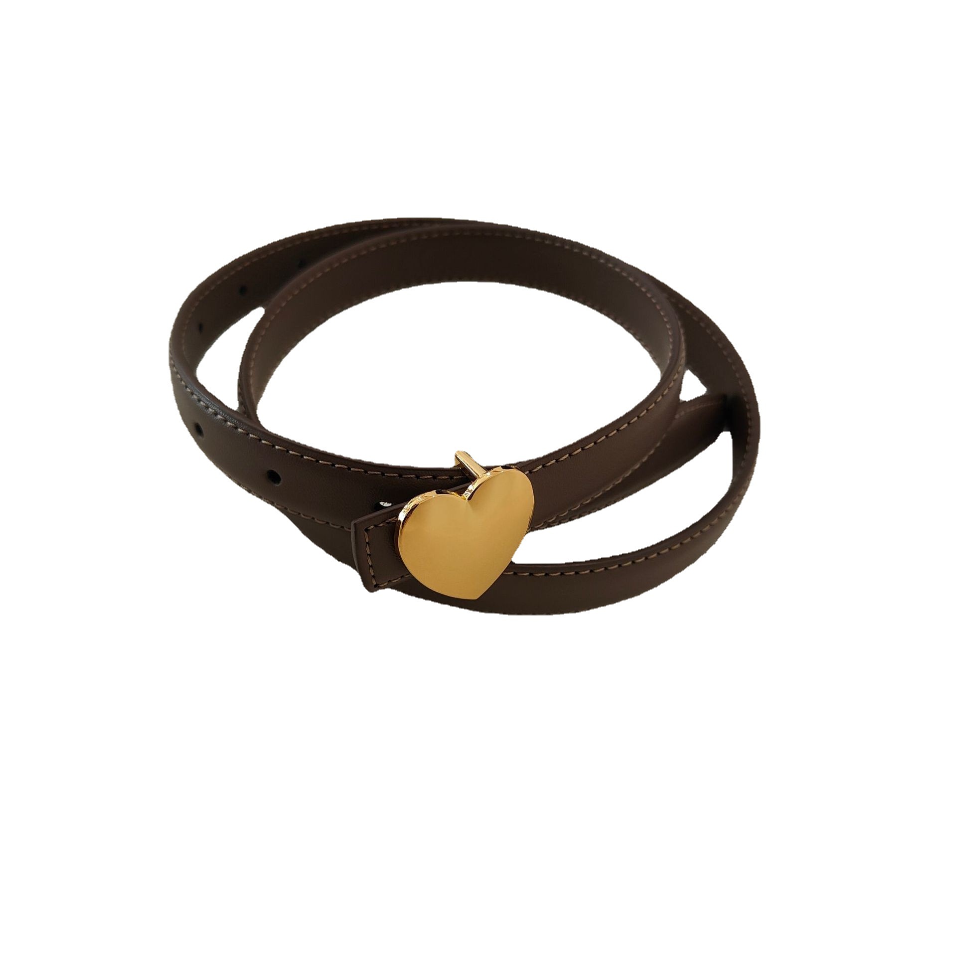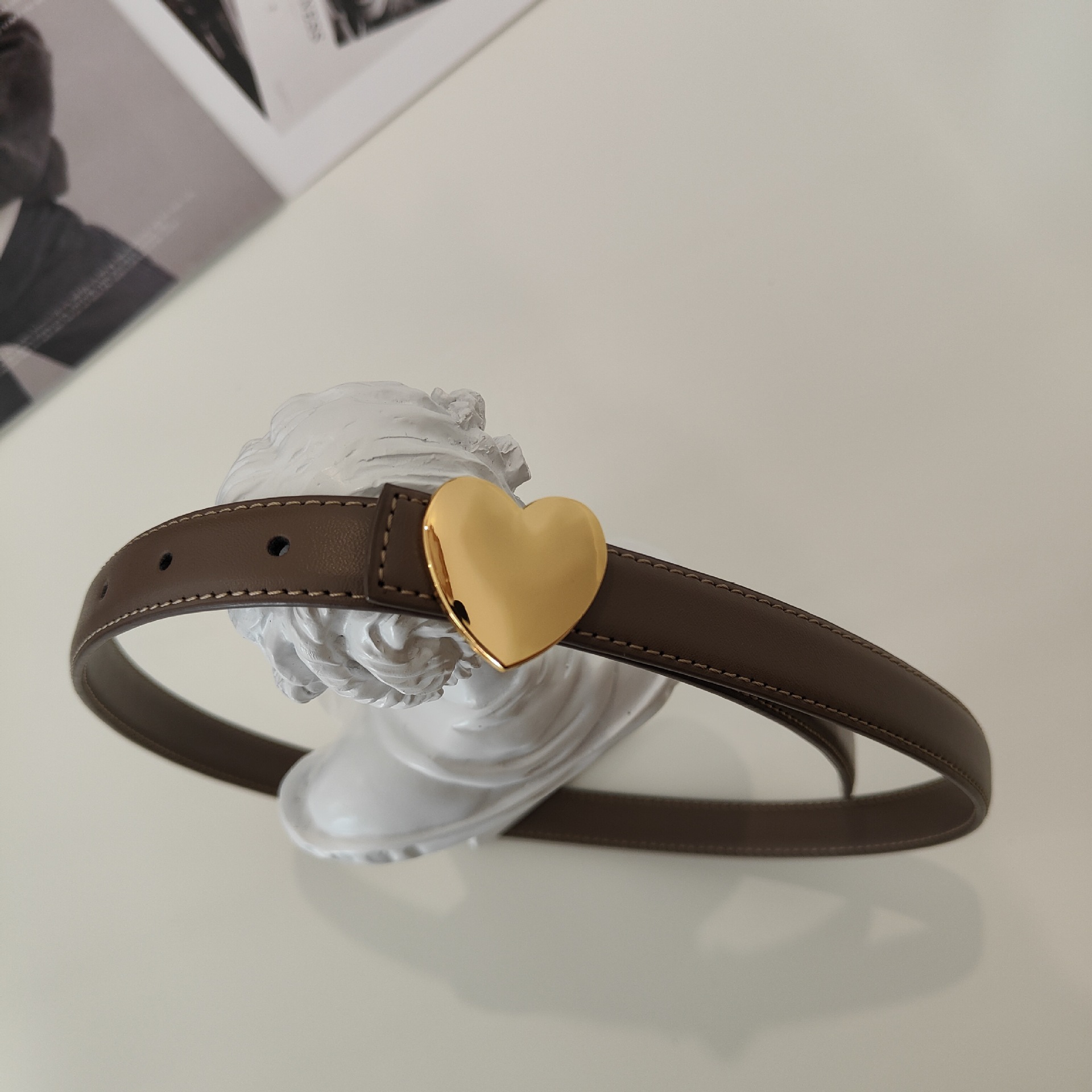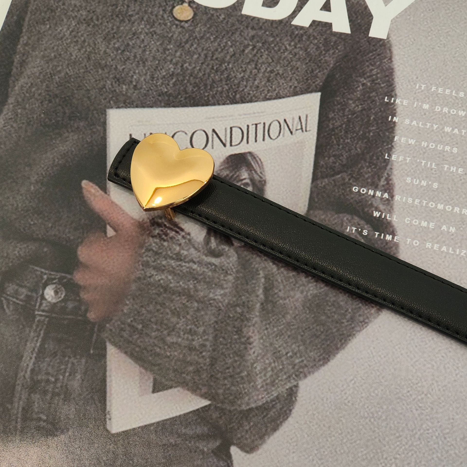 新款彩色爱心平滑扣牛皮皮带女百搭韩潮流心形腰带女