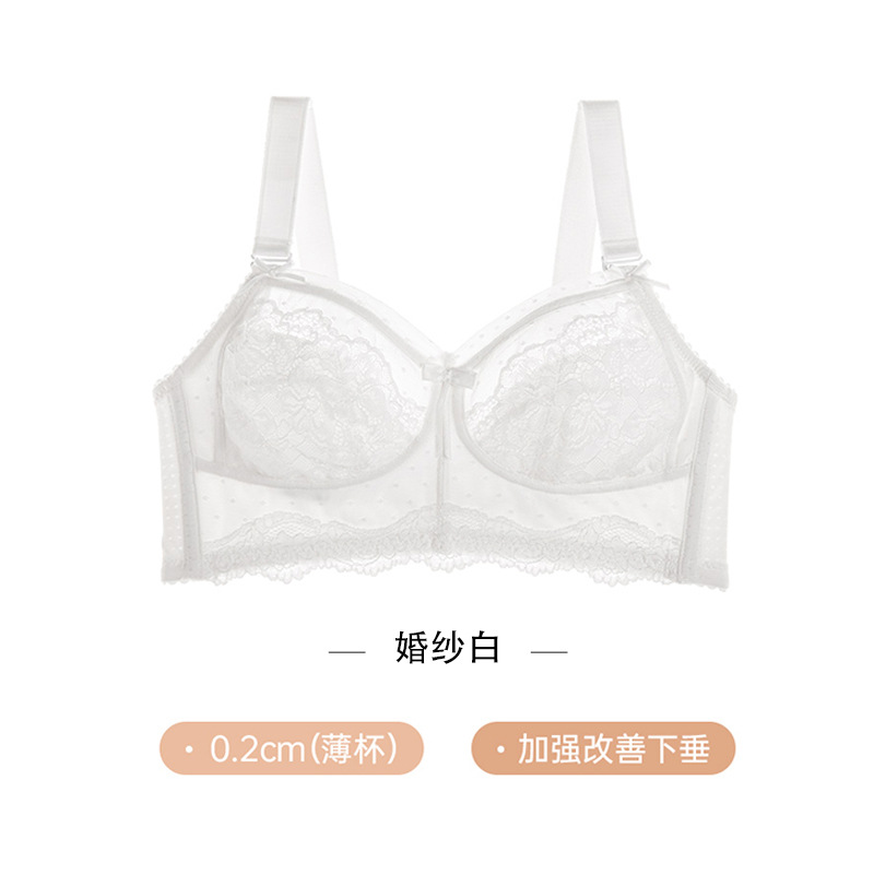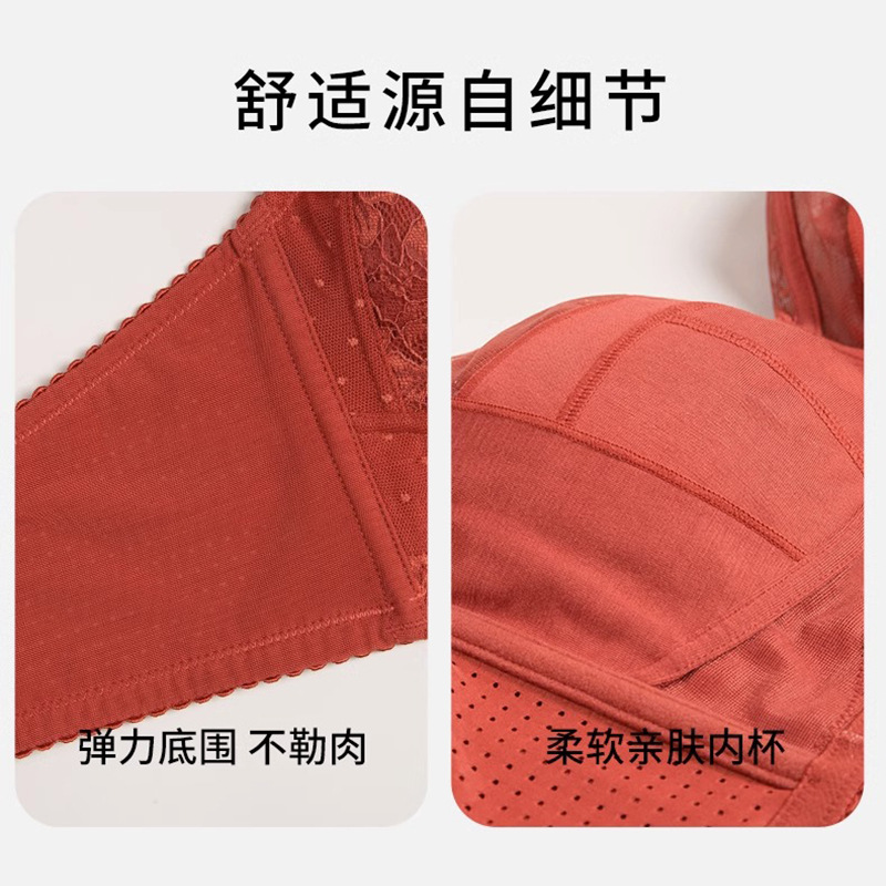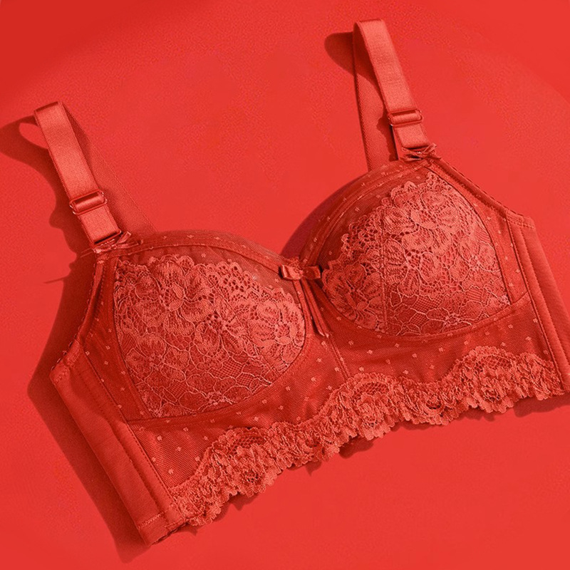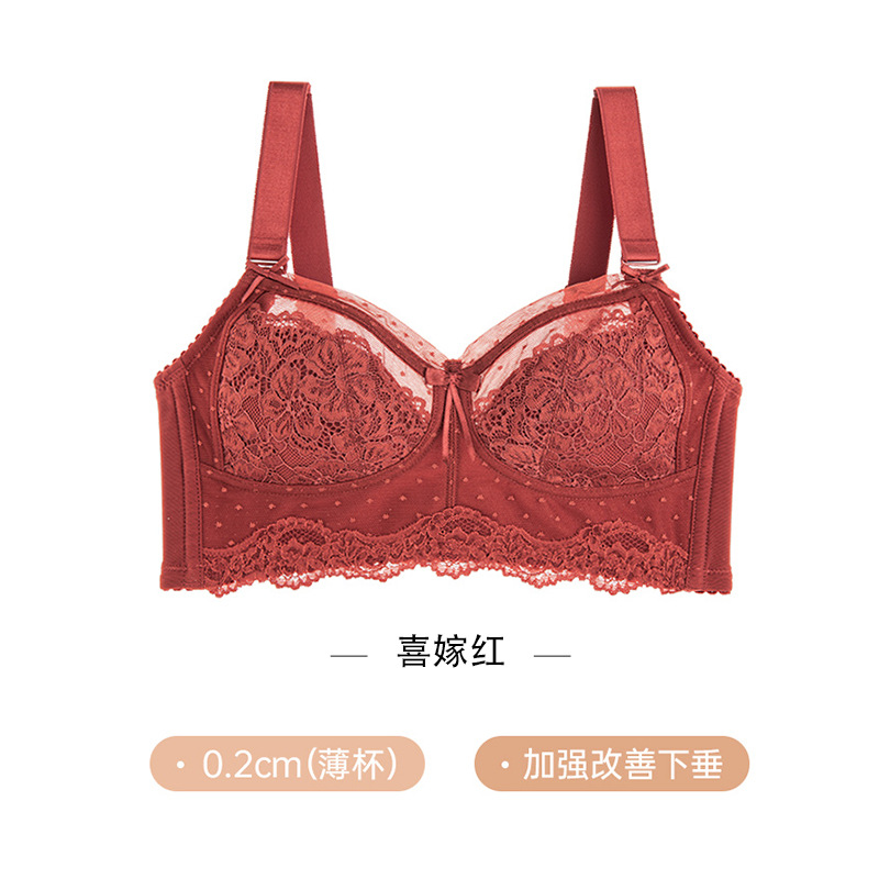 红色本命年婚纱内衣女结婚新娘大胸显小无钢圈文胸大码薄款胸罩