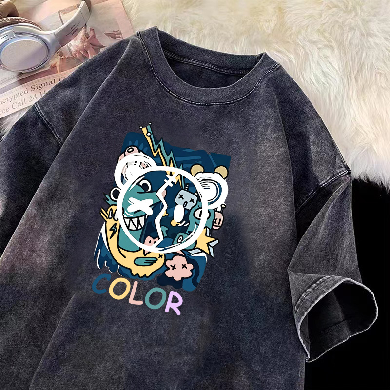 夏季新款纯棉短袖t恤男士ins港风重磅纯棉休闲上衣服水洗做旧体恤