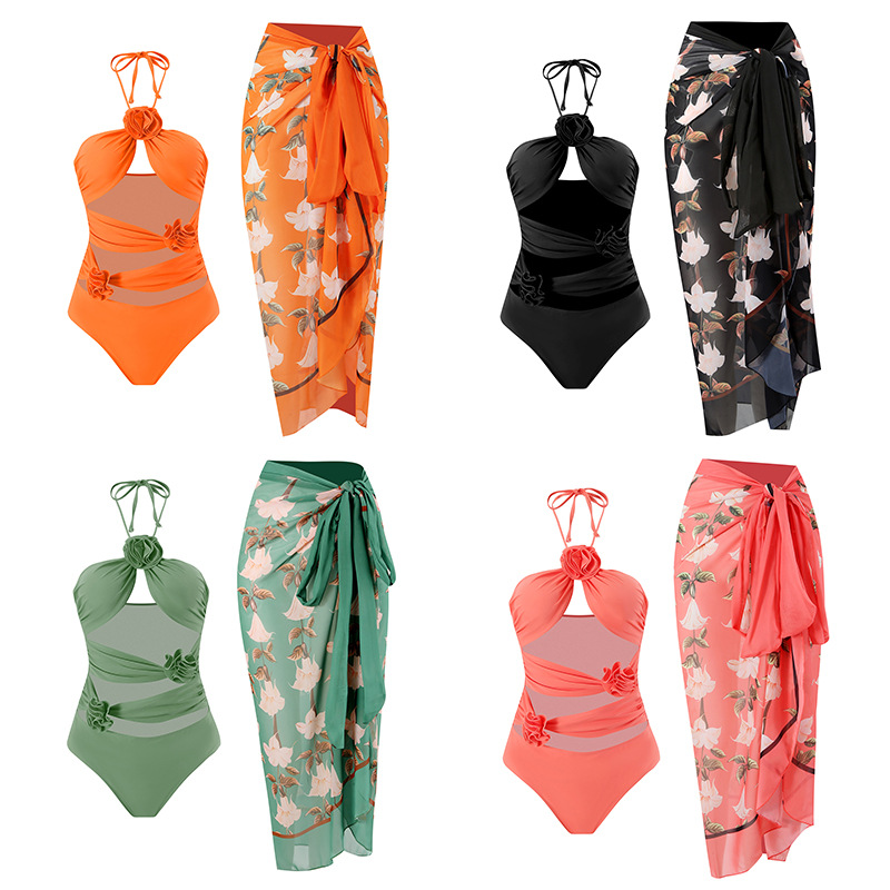 【波西米亚风新款泳衣女】沙滩度假纱裙防晒多色连体套装欧美泳装