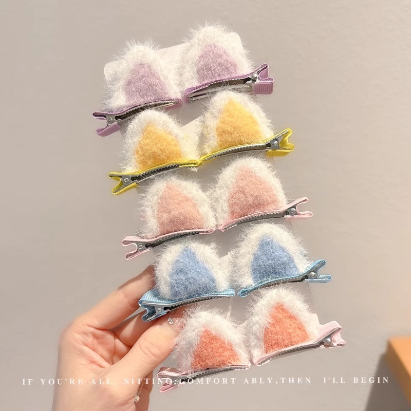 秋冬儿童猫耳朵发夹可爱女孩兔耳朵夹子头饰女童宝宝毛毛发卡顶夹