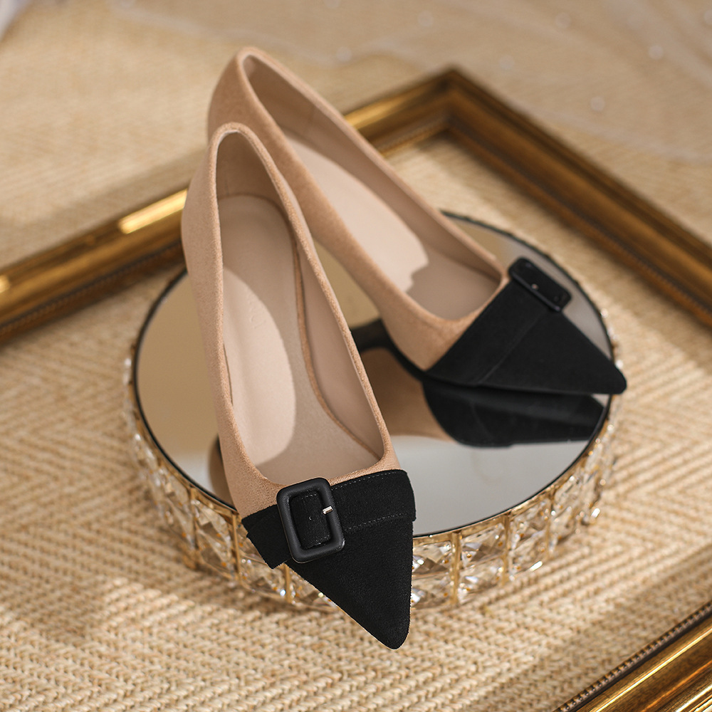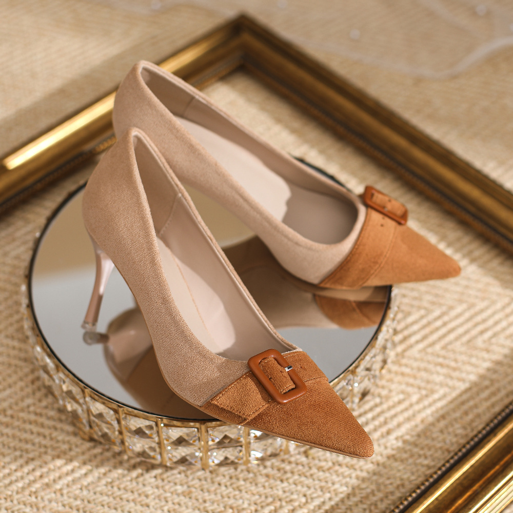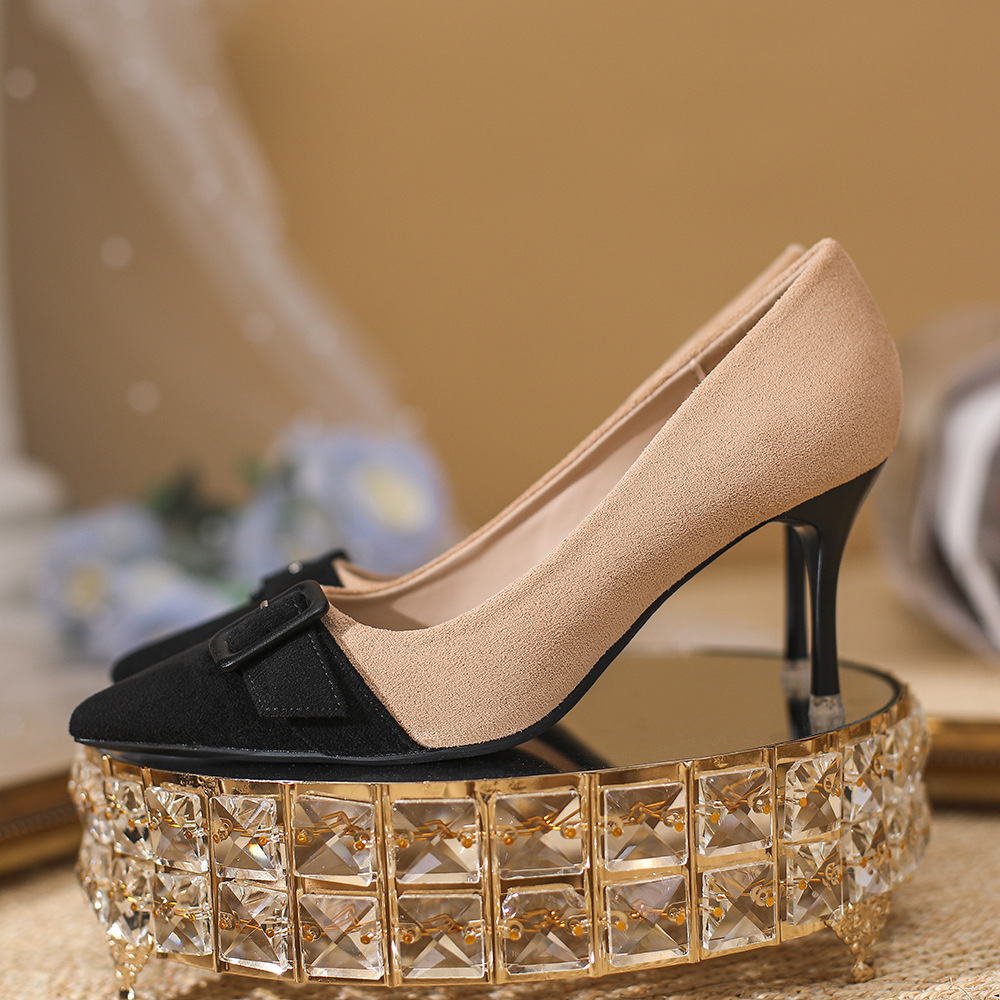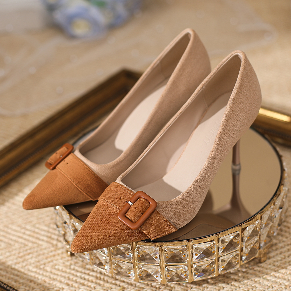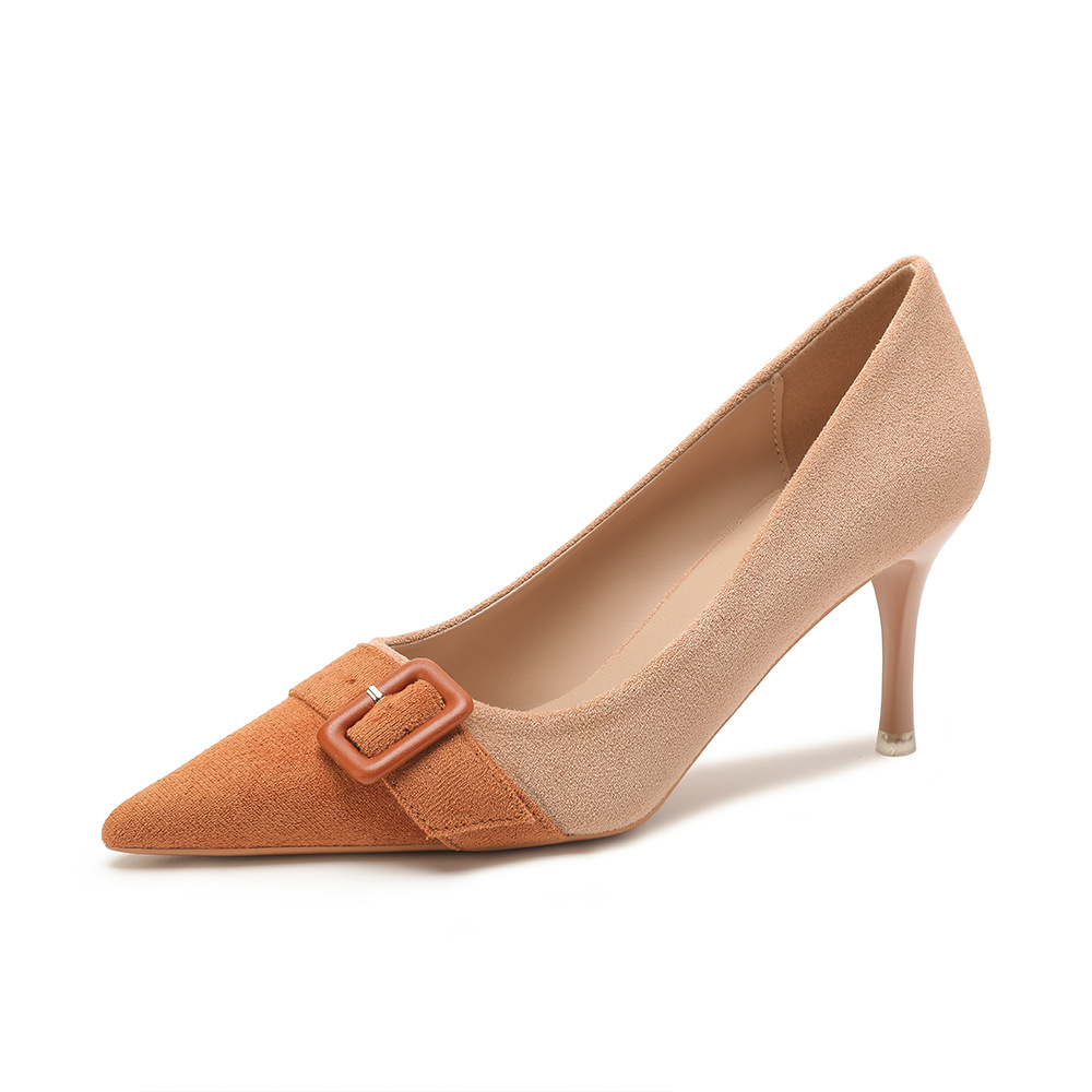 拼色高跟鞋季新款绒面韩版时尚性感尖头细跟单鞋