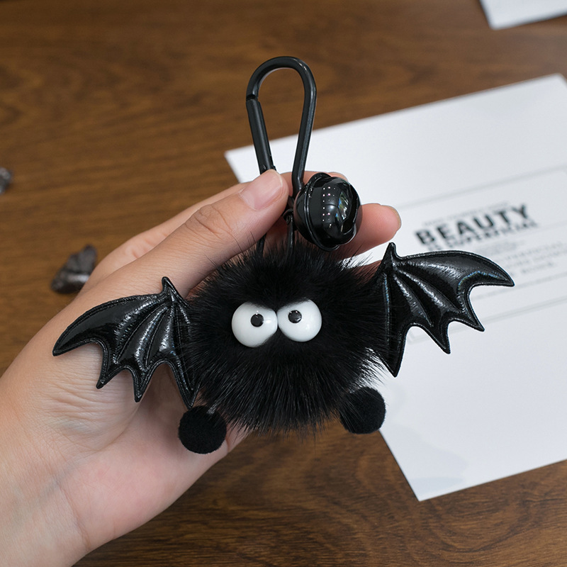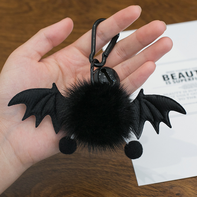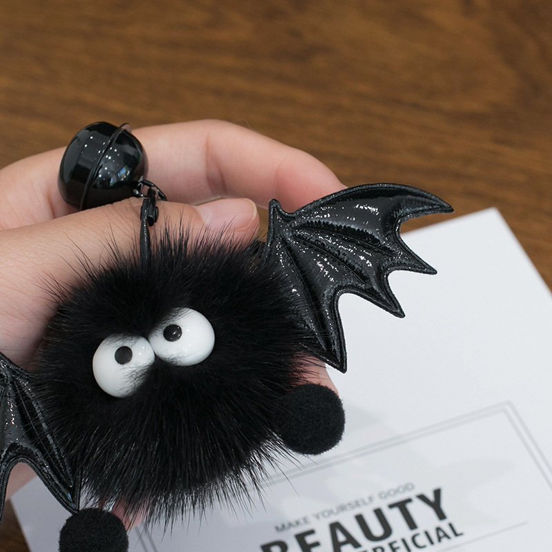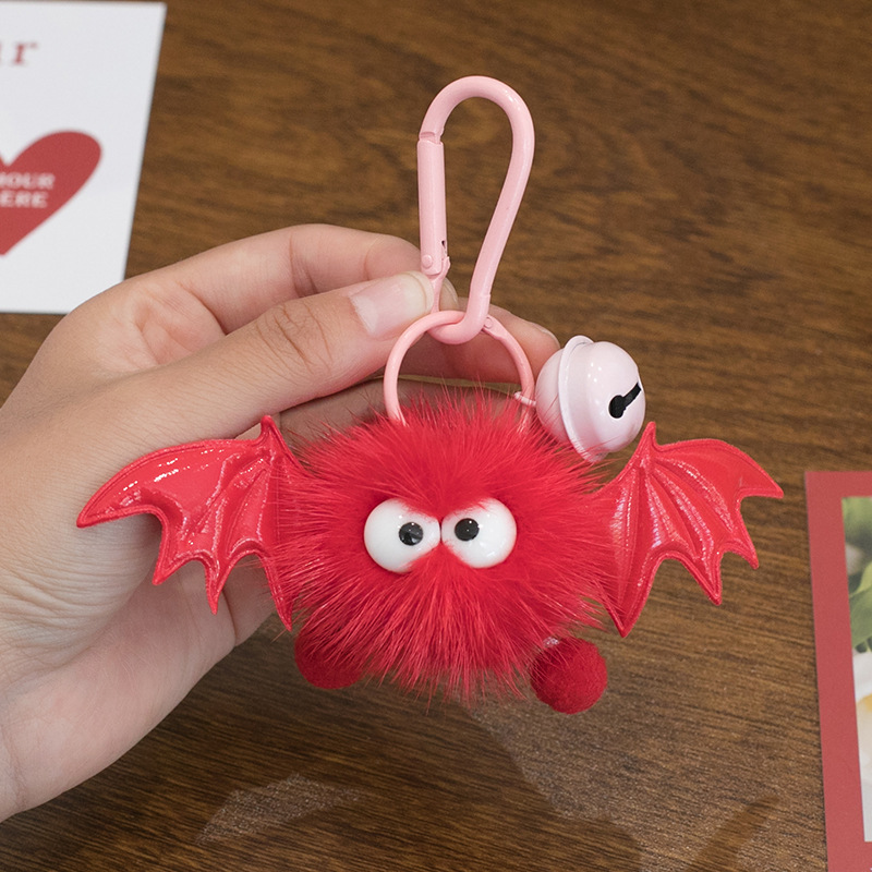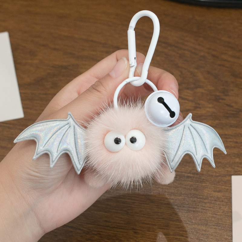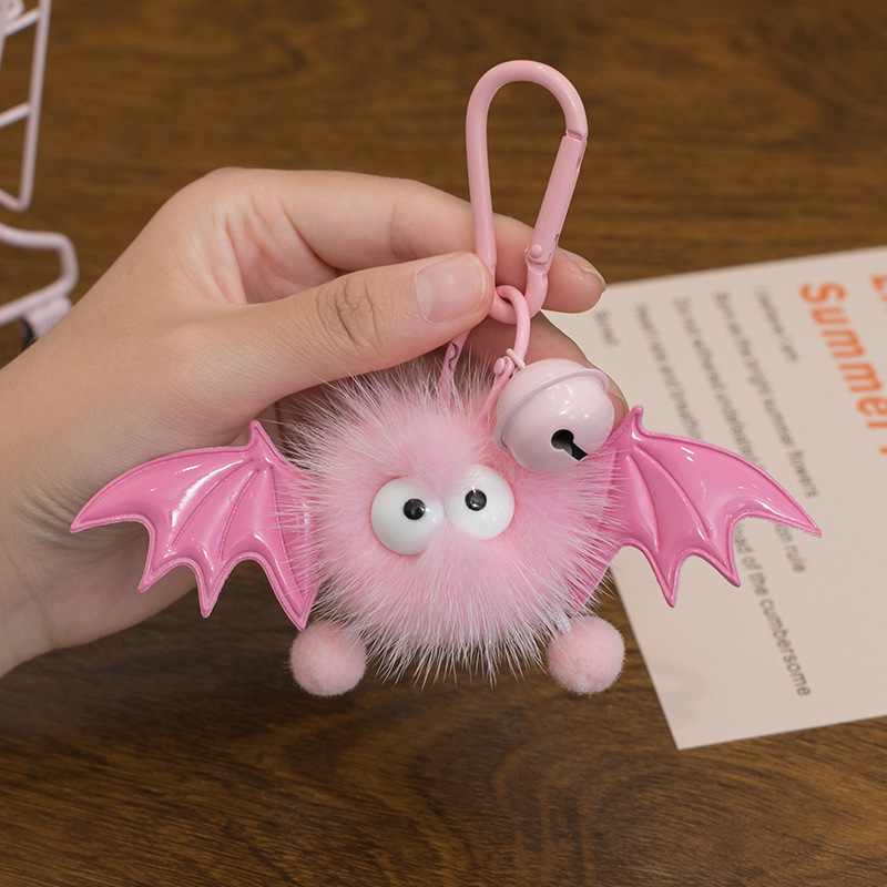 真毛貂毛蝙蝠卡通铃铛水貂毛皮草翅膀毛绒挂件汽车钥匙扣毛球包挂