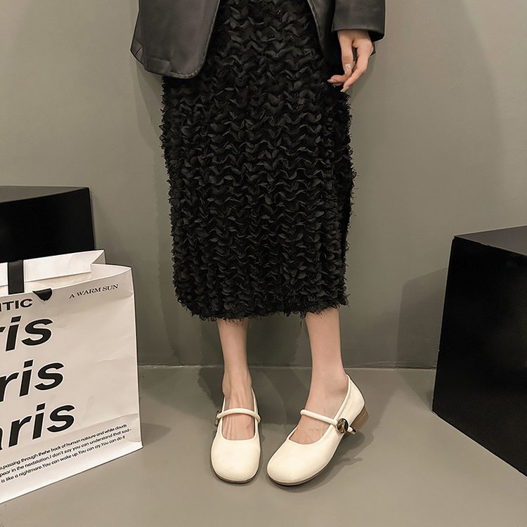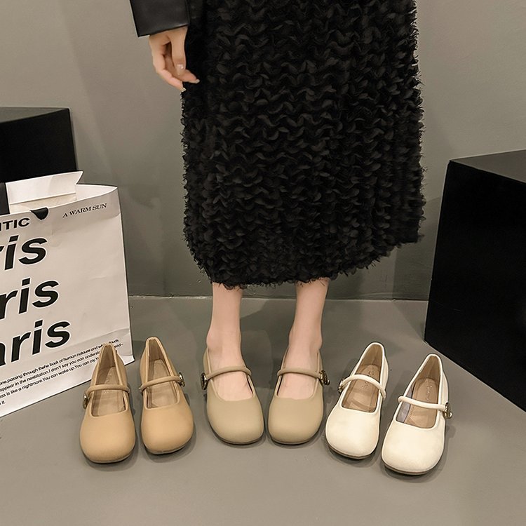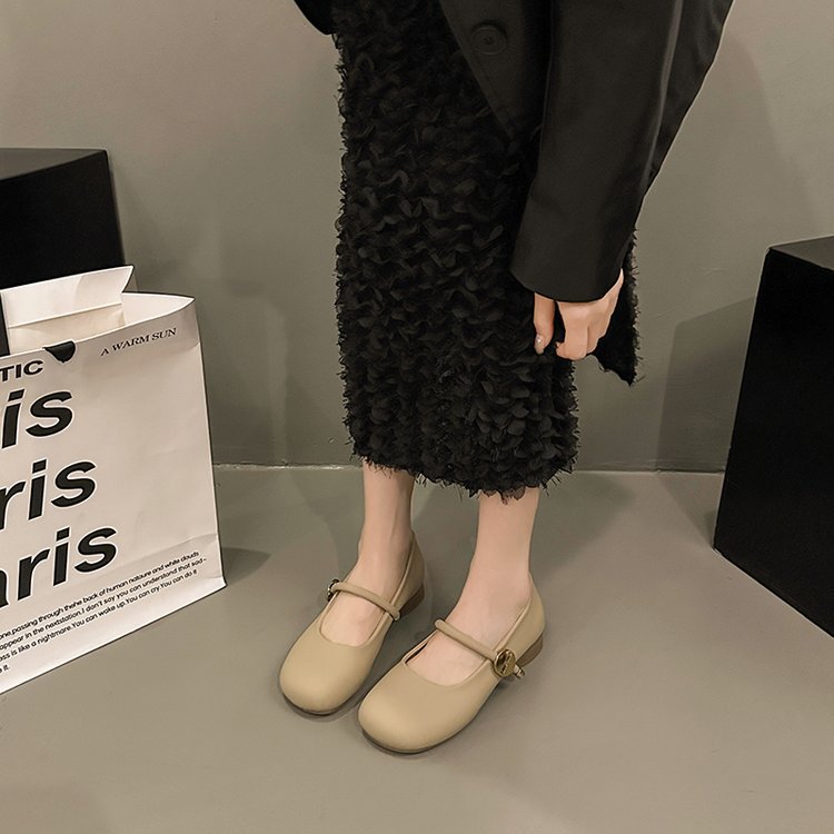 玛丽珍鞋女粗跟单鞋年低跟配裙子小皮鞋法式豆豆鞋
