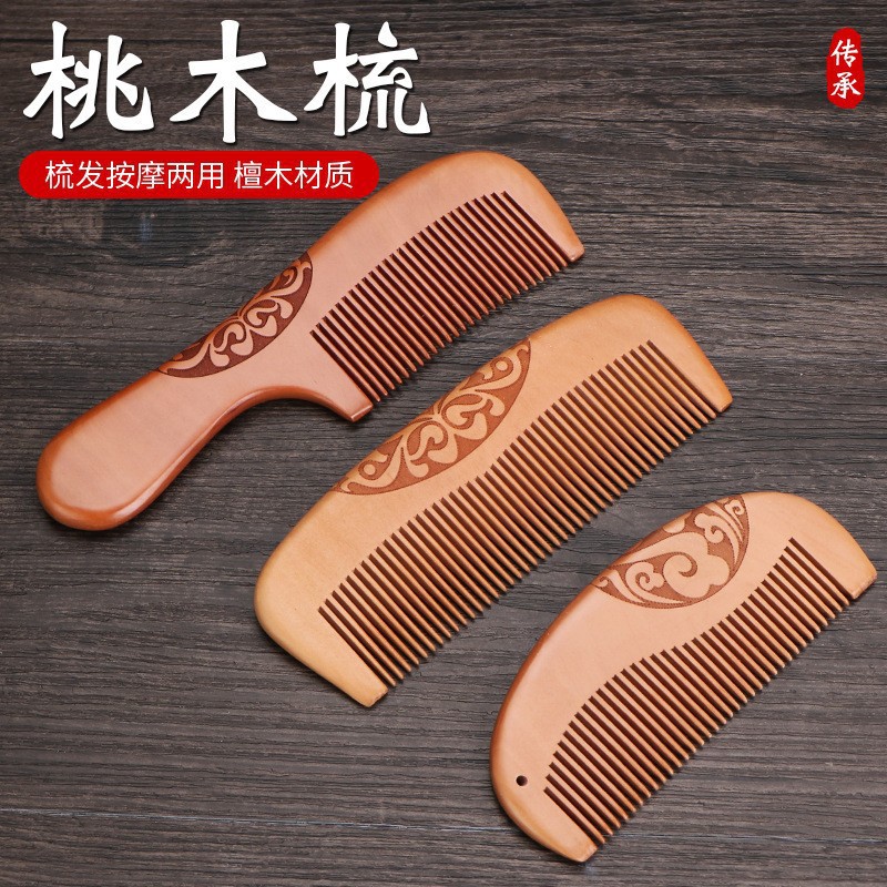 桃木梳子加厚礼品雕花梳子密齿旅游纪念大号木梳