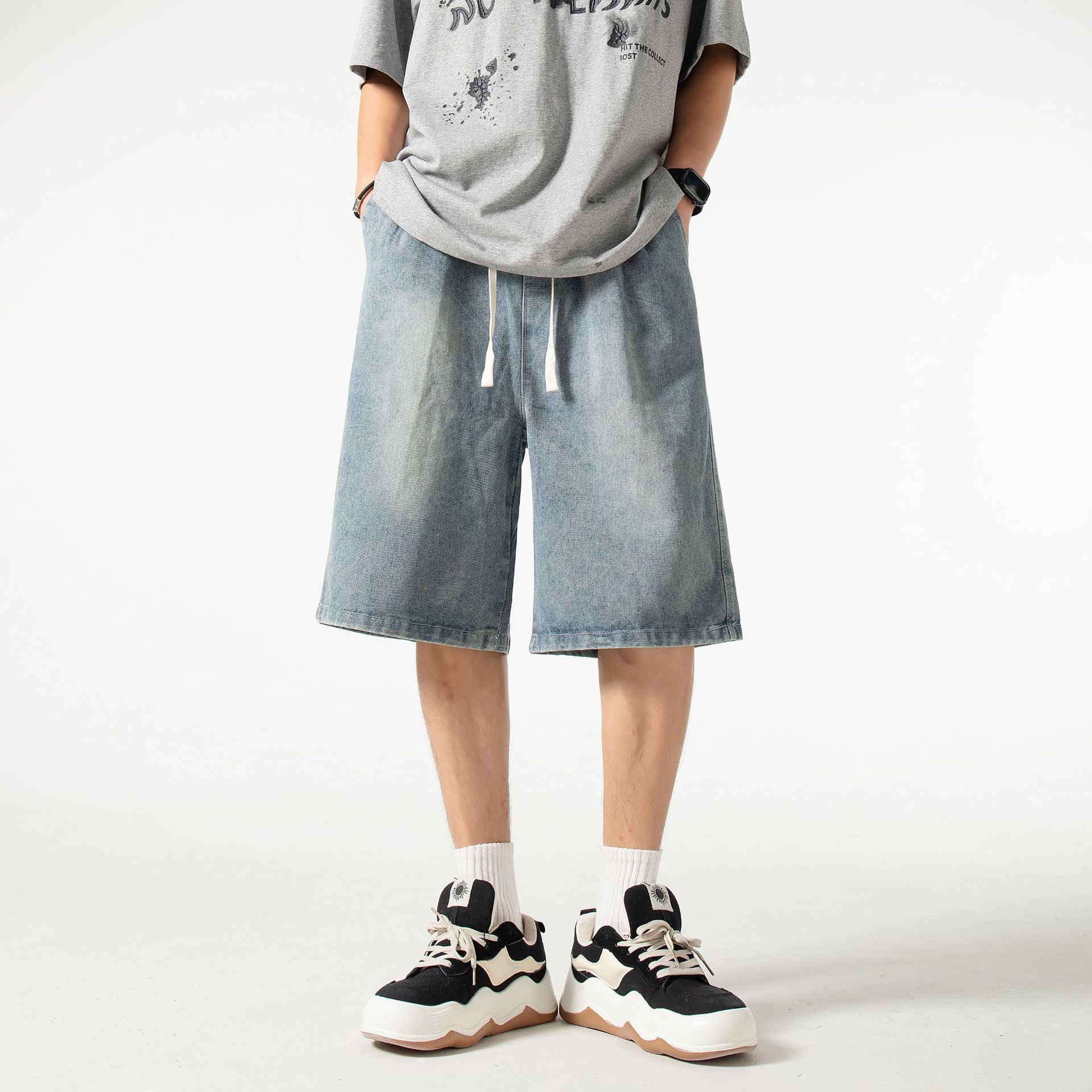 美式vibe复古水洗牛仔短裤男夏季新款高街潮牌百搭宽松直筒五分裤